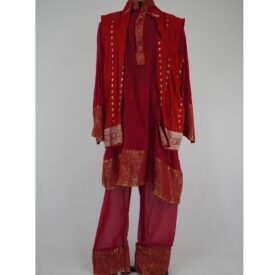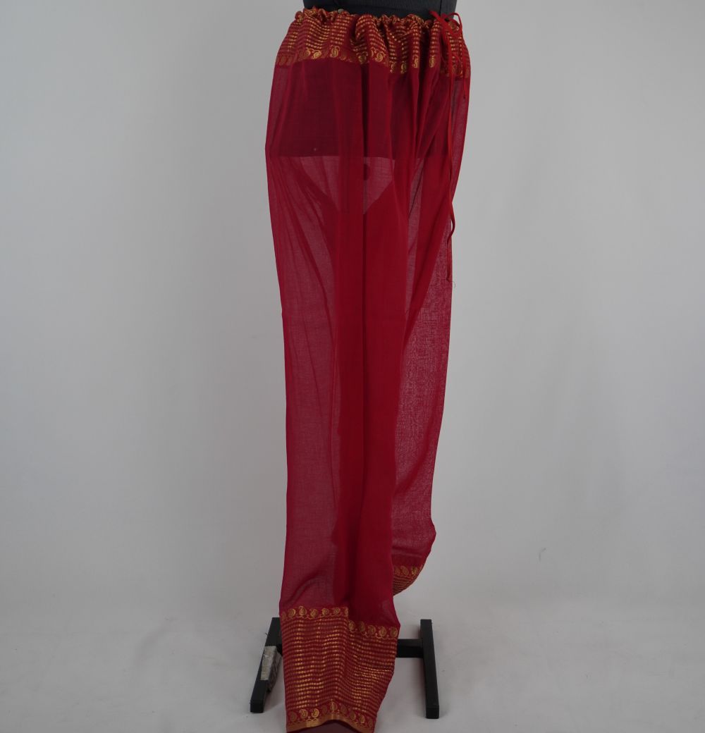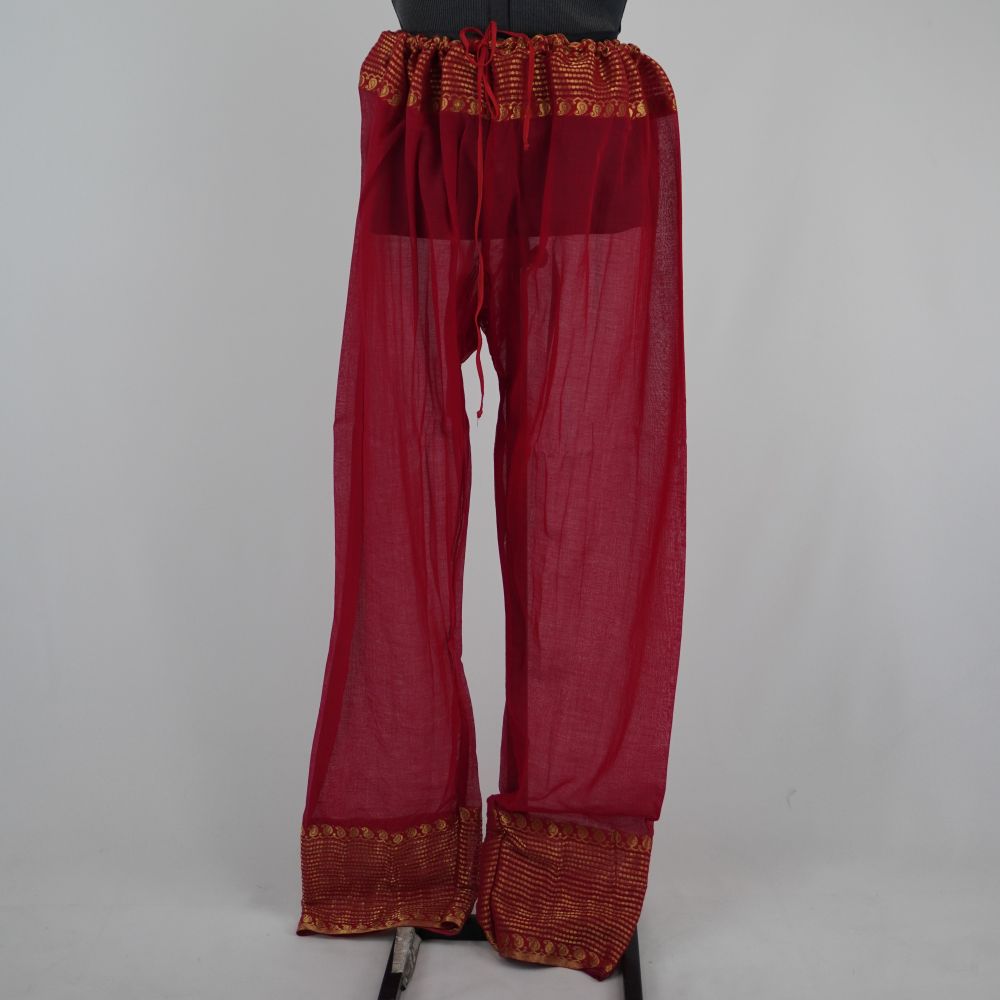 • Calça de cambraia vermelha com jacquard vermelho e dourado
