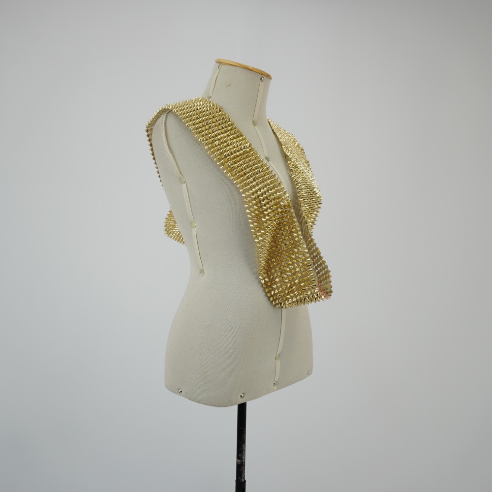 Acessório figurino Banquete Voltar U.BQ.09.039 (1) U.BQ.09.039 (2) U.BQ.09.039 (3) Metadados Miniatura Compartilhe Número de TomboU.BQ.09.039TítuloAcessório figurino BanqueteDescriçãoFaixa retangular fechada, com base de tela semi-transparente com aplicação de spikes em cone dourado por toda superfície.LocalizaçãoSala 003EspetáculoO BanqueteAno do Espetáculo2009ColeçãoColeção RepertórioDimensões do Item - altura x largura (cm)11 x 83Material/Composição do ItemBase tecido plano sintético; Spikes de plásticoEstado de ConservaçãoRegularData da Catalogaçãojaneiro 15, 2026 Continuar navegando Acessório figurino em tela Banquete Vestido robe branco Vera Voltar para a lista de itens