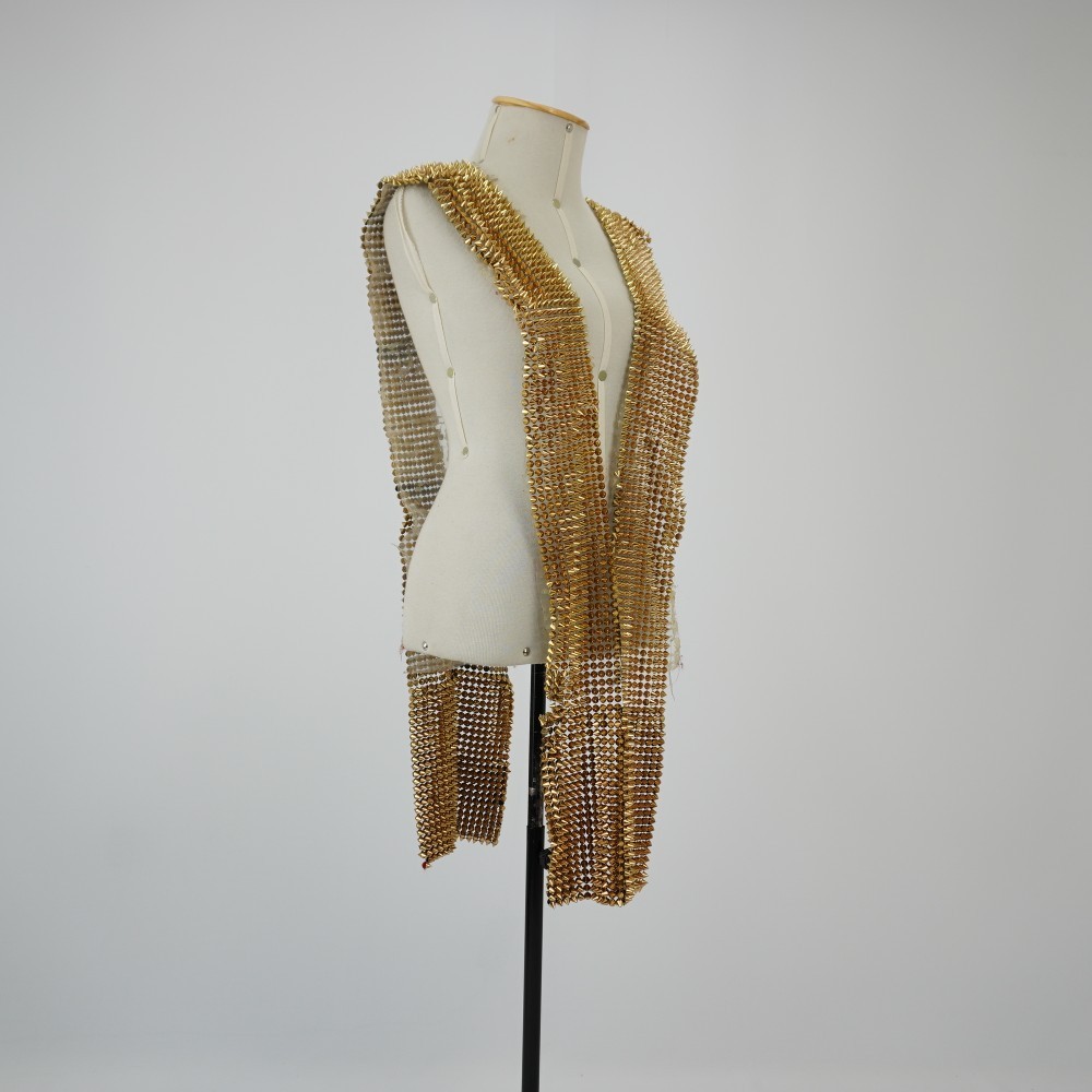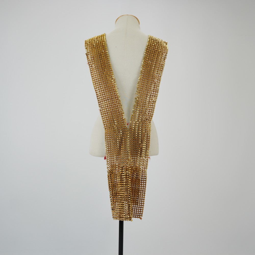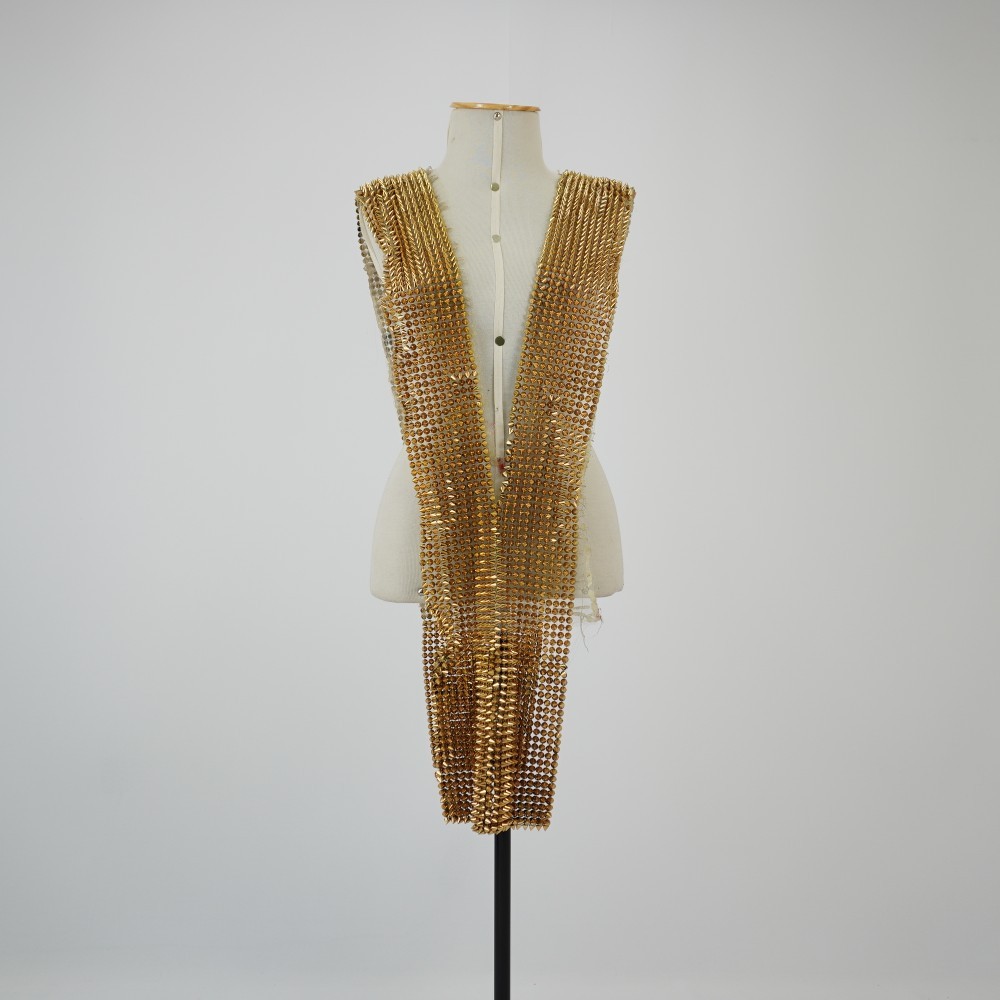 Acessório figurino em tela Banquete Voltar U.BQ.09.038 (1) U.BQ.09.038 (2) U.BQ.09.038 (3) Metadados Miniatura Compartilhe Número de TomboU.BQ.09.038TítuloAcessório figurino em tela BanqueteDescriçãoAcessório de figurino em base de tela ssemitransparente em formato de colete. Aplicação de spikes em cone dourado por toda superfície.LocalizaçãoSala 003EspetáculoO BanqueteAno do Espetáculo2009ColeçãoColeção RepertórioDimensões do Item - altura x largura (cm)89 x 32Material/Composição do ItemBase tecido plano sintético; Spike plástico.Estado de ConservaçãoRuimData da Catalogaçãojaneiro 15, 2026 Continuar navegando Vestido túnica preto Acessório figurino Banquete Voltar para a lista de itens