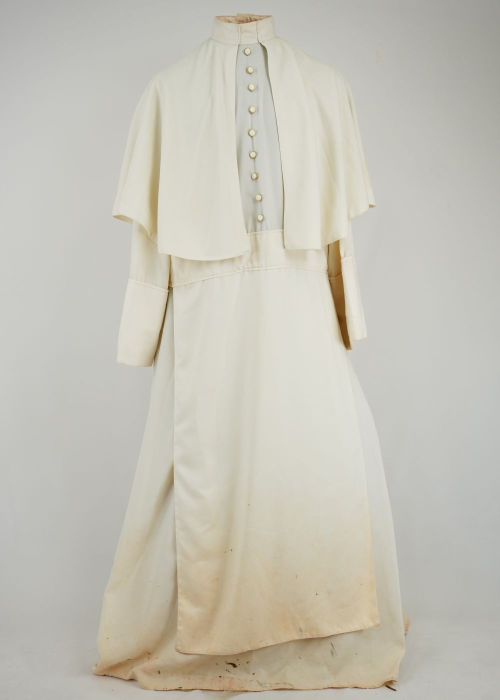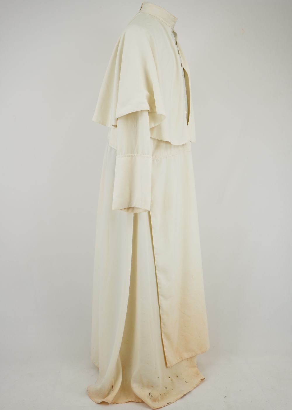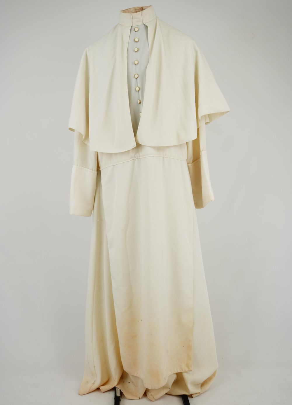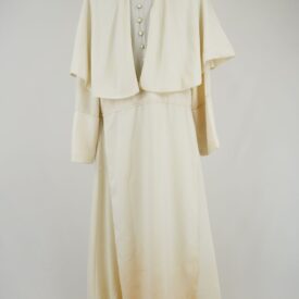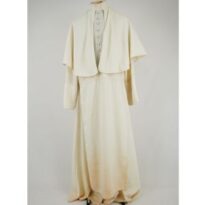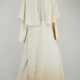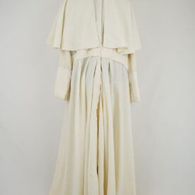 Bata creme do Bispo Sardinha Voltar DSC00746 DSC00747 DSC00748 Figurino completo DSC00750 Metadados Miniatura Compartilhe Número de TomboU.ZC.01.035aTítuloBata creme do Bispo SardinhaDescriçãoBata creme com fechamento traseiro em velcro com botões frontais decorativos e sobrecapa.LocalizaçãoArara 002EspetáculoOs Sertões - O Homem IAno do Espetáculo2003Quem vestiuJosé Celso Martinez CorrêaPersonagemBispo SardinhaColeçãoColeção de Peças RarasDimensões do Item Altura156 Largura72 Material/Composição do ItemTecido plano cremeEstado de ConservaçãoBomData da Catalogaçãoagosto 19, 2025 Mais Informações NotasFigurino completo composto por: Bata creme do Bispo Sardinha - U. ZC.01.035a Saiote do Bispo Sardinha - U.ZC.01.035b Continuar navegando Meia de renda com babado de renda Dona Poloquinha Camisa de botão azul Lina Bo Voltar para a lista de itens