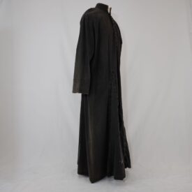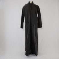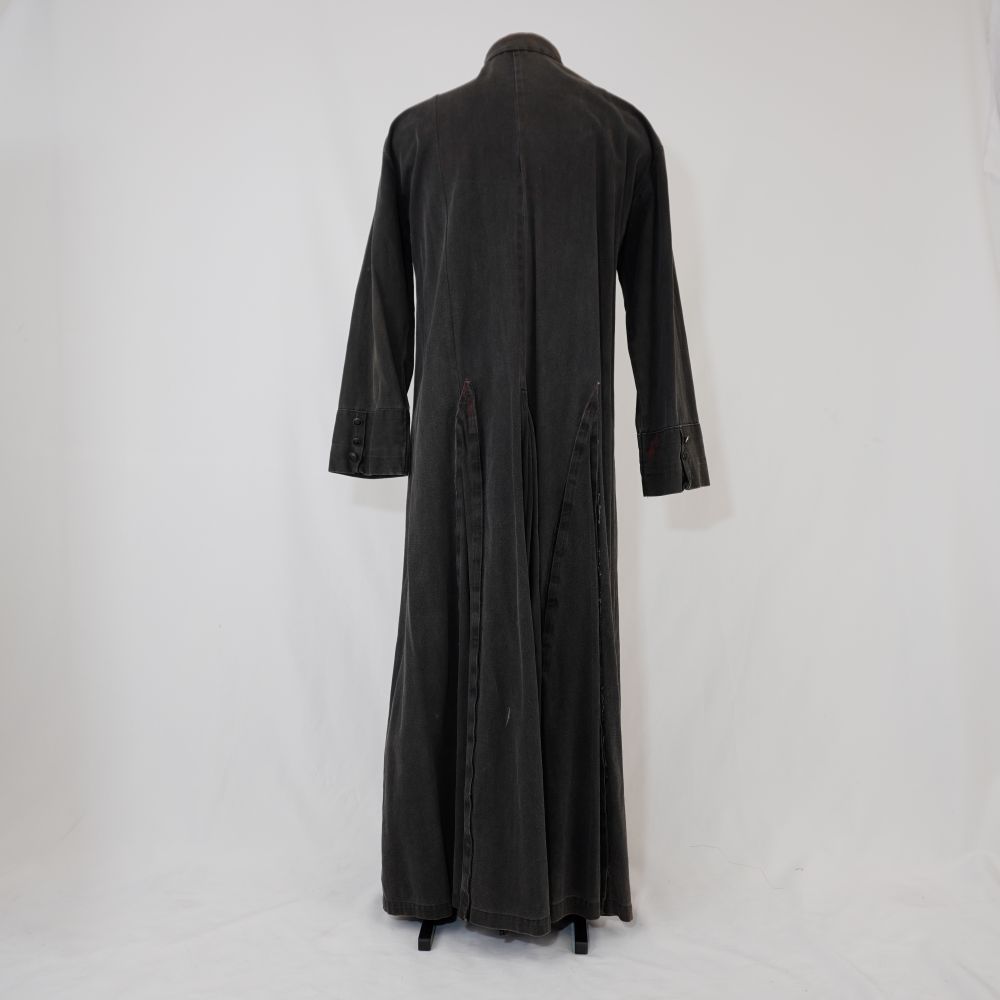 Batina preta Bispo Sardinha Voltar U.ZC.01.035c (2) U.ZC.01.035c (3) Metadados Miniatura Compartilhe Número de TomboU.ZC.01.035cTítuloBatina preta Bispo SardinhaDescriçãoBatina preta com botões aplicados, na parte frontal existem duas nesgas com velcro que eram arrancadas para ficar de pernas de foraLocalizaçãoArara 002EspetáculoOs Sertões - O Homem IAno do Espetáculo2003Autoria: figurinista/aderecista David Schumaker Quem vestiuJosé Celso Martinez CorrêaPersonagemBispo SardinhaColeçãoColeção de Peças RarasDimensões do Item - altura x largura (cm)148 x 56Material/Composição do ItemBrim preto, botões de plástico e velcroEstado de ConservaçãoRegularData da Catalogaçãooutubro 16, 2025 Mais Informações NotasComplemento do Bispo Sardinha. Inscrição "Zé" Continuar navegando Sobretudo cinza Macacão off white estilo autobilista Voltar para a lista de itens