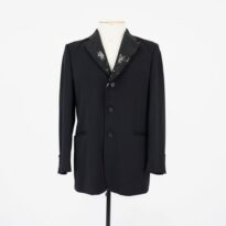 Blazer preto com paetê Voltar U.MG.94.047 (2) U.MG.94.047 (3) Metadados Miniatura Compartilhe Número de TomboU.MG.94.047TítuloBlazer preto com paetêDescriçãoBlazer preto forrado. Lapela com paetê bordado preto. 3 botões frontais e 3 bolsos embutidos frontais e 3 bolsos internos. 4 botões decorativos em cada punho.LocalizaçãoSala 008EspetáculoMistérios GozózosQuem vestiuSérgio SivieroColeçãoColeção RepertórioDimensões do Item - altura x largura (cm)86 x 79Material/Composição do Item100% poliéster - tecido planoEstado de ConservaçãoBomData da Catalogaçãonovembro 28, 2025 Mais Informações NotasInscrição: "S.S."; Etiqueta: "Made in Brazil" Continuar navegando Fraque preto com paetê Cinta bege Voltar para a lista de itens