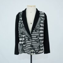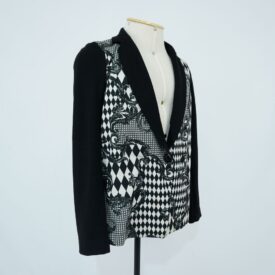 Blazer Preto e branco Walmor e Cacilda Voltar U.WC.14.025 (2) U.WC.14.025 (3) Metadados Miniatura Compartilhe Número de TomboU.WC.14.025TítuloBlazer Preto e branco Walmor e CacildaDescriçãoBlazer preto e branco estampado, com fenda nas costas, ombreiras, acabamento interno verde e amarelo e fechamento por botão duplo frontal.LocalizaçãoSala 003EspetáculoWalmor y Cacilda 64 - O RoboGolpeAno do Espetáculo2014ColeçãoColeção RepertórioDimensões do Item - altura x largura (cm)71 x 66Material/Composição do ItemMalha sintética; botões de plástico e viés em material sintéticoEstado de ConservaçãoBomData da Catalogaçãonovembro 13, 2025 Mais Informações NotasEtiqueta: PIMC SHINE; Inscrição: BRUNO H. MAI. Continuar navegando Bermuda preto e branco Vestido Veludo Preto Voltar para a lista de itens