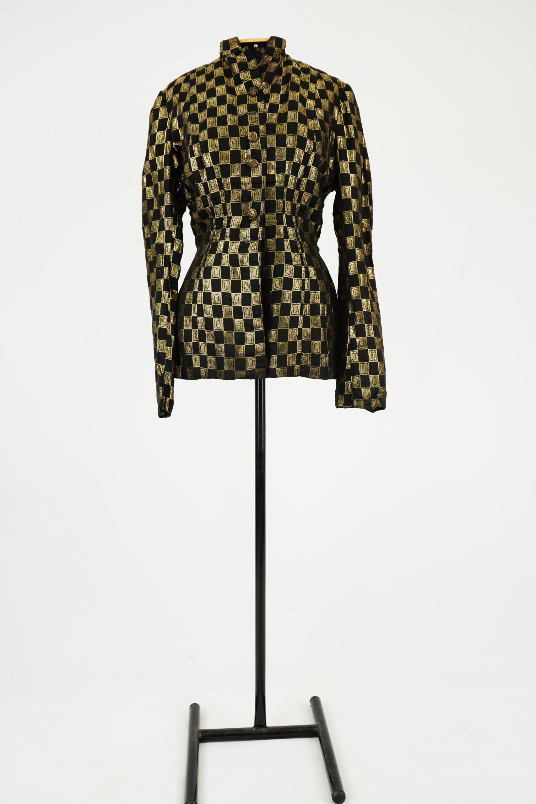 Blazer xadrez gola alta Lina Bo Voltar U.LB.01.005.foto1 U.LB.01.005.foto2 U.LB.01.005.foto3 Metadados Miniatura Compartilhe Número de TomboU.LB.01.005TítuloBlazer xadrez gola alta Lina BoDescriçãoBlazer preto em padronagem jacquard dourada com gola alta e botões forrados de pézinhoLocalizaçãoArara 003Quem vestiuLina BoColeçãoColeção de Peças RarasDimensões do Item Altura72 Largura66 Material/Composição do ItemTecido Jacquard de lurex; botões de pézinho forradoscom tecidoEstado de ConservaçãoRuimData da Catalogaçãoagosto 19, 2025 Mais Informações NotasAcervo pessoal Lina Bo Continuar navegando Meia de renda com babado de renda Dona Poloquinha Camisa de botão azul Lina Bo Voltar para a lista de itens