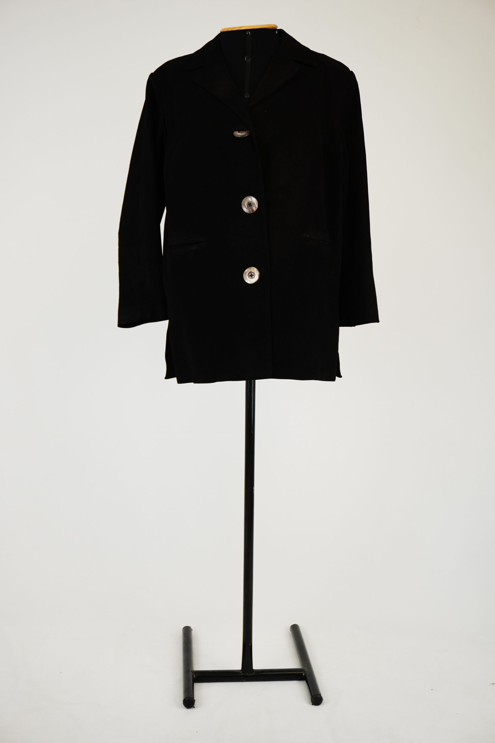 Blazer preto Lina Bo Voltar U.LB.01.018.foto1 U.LB.01.018.foto2 U.LB.01.018.foto3 Metadados Miniatura Compartilhe Número de TomboU.LB.01.018TítuloBlazer preto Lina BoDescriçãoBlazer preto com dois bolsos faca, forro azul/roxo e fechamento por botõesLocalizaçãoArara 003Quem vestiuLina BoColeçãoColeção de Peças RarasDimensões do Item Altura77 Largura65 Material/Composição do ItemCamurça e forro de tecido plano; botões de plásticoEstado de ConservaçãoBomData da Catalogaçãoagosto 20, 2025 Mais Informações NotasAcervo pessoal Lina Bo. | Etiqueta: VBLANCO casacos finos de antílope, camurça e pelica; um botão guardado no bolso Continuar navegando Vestido curto azul Lina Bo Camisa de seda esmeralda Lina Bo Voltar para a lista de itens