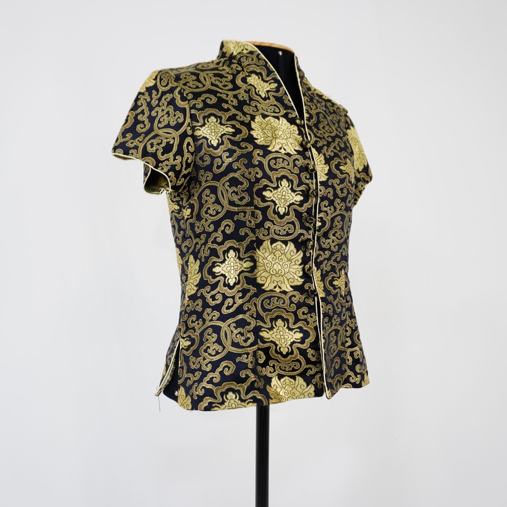 • Blusa chinesa preta e dourada