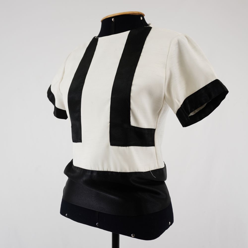 Blusa com aplicações geométricas Voltar U.CS.01.081a (1) U.CS.01.081a (2) U.CS.01.081a (3) Figurino completo U.CS.01.081 (1) Figurino completo U.CS.01.081 (2) Figurino completo U.CS.01.081 (3) Metadados Miniatura Compartilhe Número de TomboU.CS.01.081aTítuloBlusa com aplicações geométricasDescriçãoBlusa manga curta branca com barra da blusa e da manga em preto. Aplicações em formato geométrico em tecido prato na parte frontal. Fechamento em zíper no centro das costas.LocalizaçãoSala 003EspetáculoCacildasQuem vestiuLetícia CouraColeçãoColeção RepertórioDimensões do Item - altura x largura (cm)55 x 64Material/Composição do ItemTecido plano acetinado sintéticoEstado de ConservaçãoBomData da Catalogaçãonovembro 25, 2025 Mais Informações NotasFigurino completo composto por Blusa com aplicações geométricas - U.CS.01.081a Saia curta branca e preta - U.CS.01.081b Continuar navegando Vestido longuete gelo Saia curta branca e preta Voltar para a lista de itens