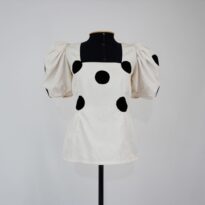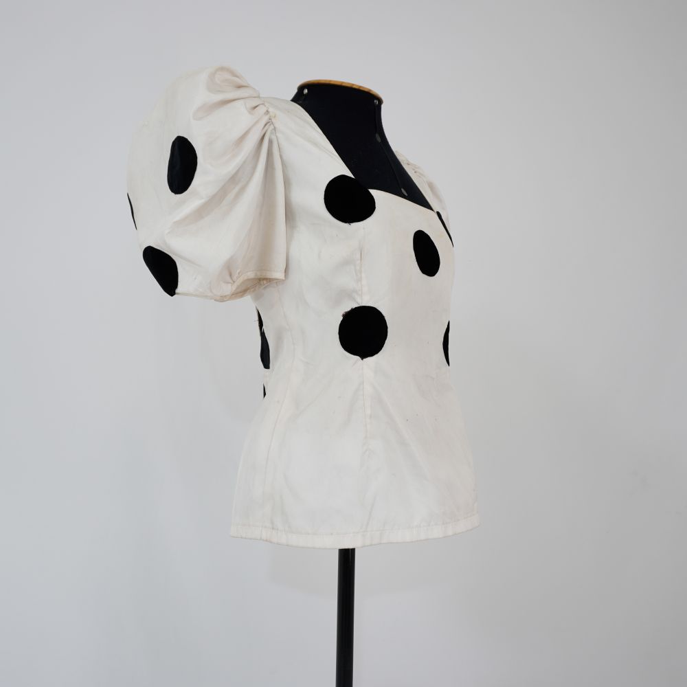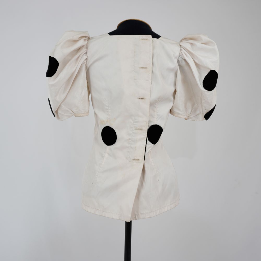 Blusa de poá Dulcina Voltar U.C2.09.006 (3) U.C2.09.006 (2) Metadados Miniatura Compartilhe Número de TomboU.C2.09.006TítuloBlusa de poá DulcinaDescriçãoBlusa off white de manga curta bufante, decote quadrado, estampa de poá com aplicação em veludo, fechamento em velcro nas costas, fechamento original em botões de madrepérola, tule de filó para amarração da mangaLocalizaçãoArara 015EspetáculoCacilda!!Ano do Espetáculo2009PersonagemDulcina de MoraesColeçãoColeção RepertórioDimensões do Item - altura x largura (cm)60 x 62Material/Composição do ItemTecido plano sintético, veludo sintético, tule e velcroEstado de ConservaçãoRegularData da Catalogaçãonovembro 6, 2025 Mais Informações NotasUsado com saia midi preta com babados Continuar navegando Vestido preto de alcinha Coro Cacilda!! Bermuda azul Voltar para a lista de itens
