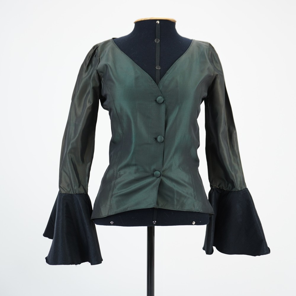 Blusa manga longa de babados pretos Voltar U.PR.01.089a (1) U.PR.01.089a (2) U.PR.01.089a (3) U.PR.01.089 (1) U.PR.01.089 (2) U.PR.01.089 (3) Metadados Miniatura Compartilhe Número de TomboU.PR.01.089aTítuloBlusa manga longa de babados pretosDescriçãoBlusa verde de manga longa com babado preto em godê nos punhos. Leve franzido nos ombros, decote em v arredondado. Fechamento em 3 botões de pé encapados.LocalizaçãoSala 003Quem vestiuVera ValdezDimensões do Item - altura x largura (cm)65 x 85Material/Composição do ItemTecido plano sintético de tafetá; Tecido plano sintético com elastanoEstado de ConservaçãoBom Continuar navegando Blusa de alça com bordado Saia verde com babado Voltar para a lista de itens