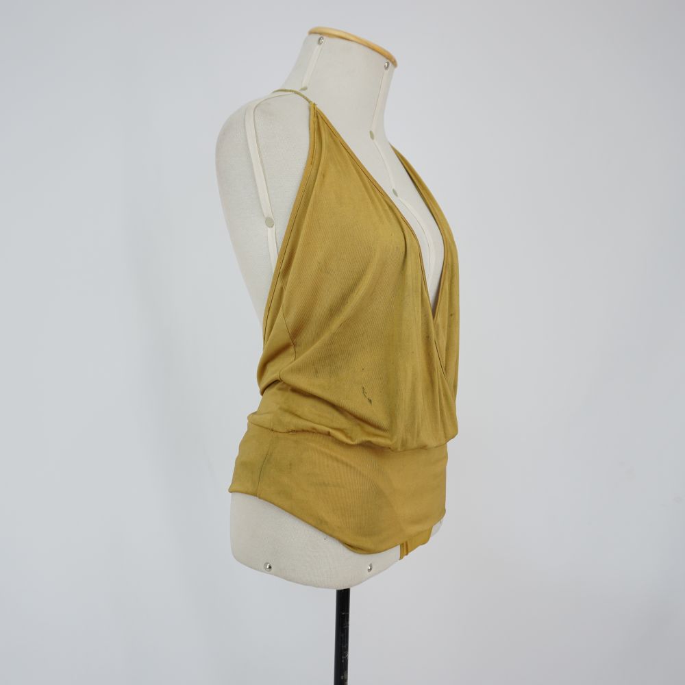 Body mostarda com decote V Voltar U.OB.07.036a (2) U.OB.07.036a (3) U.OB.07.036 Metadados Miniatura Compartilhe Número de TomboU.OB.07.036aTítuloBody mostarda com decote VDescriçãoBody em suplex mostarda com decote em 'V" transpassado, parte da cintura possui babado, fechamento em botão de pressão, alça fina dourada no pescoçoLocalizaçãoArara 014EspetáculoOs BandidosAno do Espetáculo2007Quem vestiuJules* EltingColeçãoColeção RepertórioDimensões do Item - altura x largura (cm)81 x 42Material/Composição do ItemMalha suplex: 95% poliéster, 5% elastanoEstado de ConservaçãoRegularData da Catalogaçãonovembro 6, 2025 Mais Informações NotasFigurino completo composto por: Body mostarda com decote V - U.OB.07.036a Saia preta longuete - U.OB.07.036b Continuar navegando Camisa de time Saia preta longuete Voltar para a lista de itens