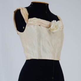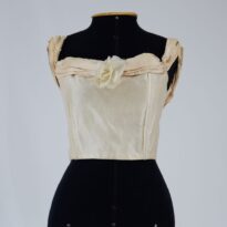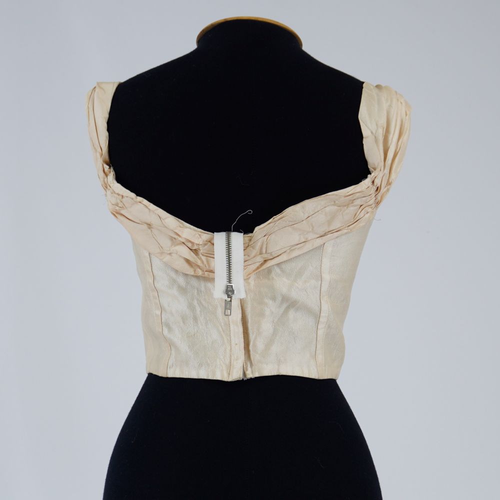 Bustiê off white Voltar U.C1.98.048 (2) U.C1.98.048 (3) Metadados Miniatura Compartilhe Número de TomboU.C1.98.048TítuloBustiê off whiteDescriçãoBustiê com alças pregueadas e aplique de flor de tecido no meio do decote. O bustiê é feito em tecido plano sintético com textura, na cor creme, com barbatanas plásticas embutidas e fechamento em zíper destacável de metal no meio das costasLocalizaçãoSala 003EspetáculoCacilda!Ano do Espetáculo1998Quem vestiuLeona CavalliPersonagemCacildaColeçãoColeção RepertórioDimensões do Item - altura x largura (cm)39 x 37Material/Composição do ItemTecido plano sintético creme, tecido plano sintético off white e zíper de metalEstado de ConservaçãoBomData da Catalogaçãonovembro 5, 2025 Continuar navegando Jaqueta curta preta Lina Bo Vestido de veludo vermelho Voltar para a lista de itens