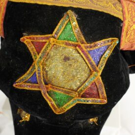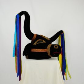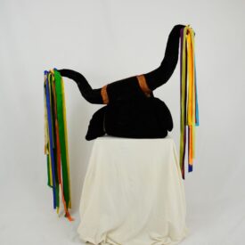 Cabeça do Boi Sparagmos 2 Voltar U.BX.95.021b (2) U.BX.95.021b (3) U.BX.95.021b (4) Figurino Completo U.BX.95.021 Metadados Miniatura Compartilhe Número de TomboU.BX.95.021bTítuloCabeça do Boi Sparagmos 2DescriçãoCabeça de boi de veludo preto, com fitas de cetim, em ambos os chifres e apliques de fitas jacquard e lantejoulas, tule metalizado nos olhosLocalizaçãoArara 007EspetáculoBacantesAno do Espetáculo2001PersonagemO BoiColeçãoColeção RepertórioDimensões do Item - altura x largura (cm)6 x 91Material/Composição do ItemVeludo, fitas de cetim, jacquard, lantejoulas, tule metalizado, base de capacete plástico e espumaEstado de ConservaçãoRegularData da Catalogaçãosetembro 25, 2025 Mais Informações NotasFigurino completo composto por: Capa Parte do Boi Sparagmos 2 - U.BX.95.021a Cabeça do Boi Sparagmos 2 - U.BX.95.021b Continuar navegando Burca preta Nascimento de Dionisios 4 Túnica Coro Bacas azul royal Voltar para a lista de itens