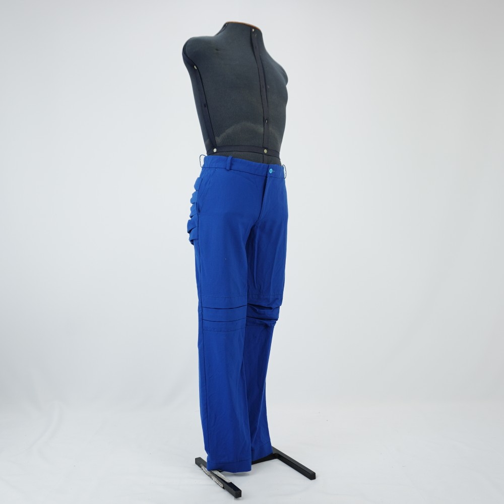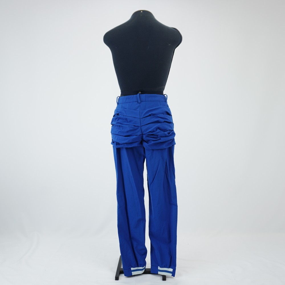 Calça azul com pregas Voltar U.RO.18.067 (1) U.RO.18.067 (2) U.RO.18.067 (3) Metadados Miniatura Compartilhe Número de TomboU.RO.18.067TítuloCalça azul com pregasDescriçãoCalça reta azul com detalhes pregueados no joelho e na bunda. Cós com cinco passantes, bolso faca e fechamento com dois botões, sendo um interno e zíper. Barra com detalhe de ribana branca e azul na parte traseira.LocalizaçãoSala 008EspetáculoRoda VivaAno do Espetáculo2018Autoria: figurinista/aderecista Sonia Ushiyama Quem vestiuRoderick HimerosPersonagemBenedito SilverColeçãoColeção RepertórioDimensões do Item - altura x largura (cm)102 x 56Material/Composição do ItemTecido plano misto, botão de plástico, forro tecido plano sintéticoEstado de ConservaçãoRegularData da Catalogaçãojaneiro 21, 2026 Mais Informações NotasUsada somente em ensaio para teste de figurino. Continuar navegando Casaco militar azul Saia de Ogum Voltar para a lista de itens
