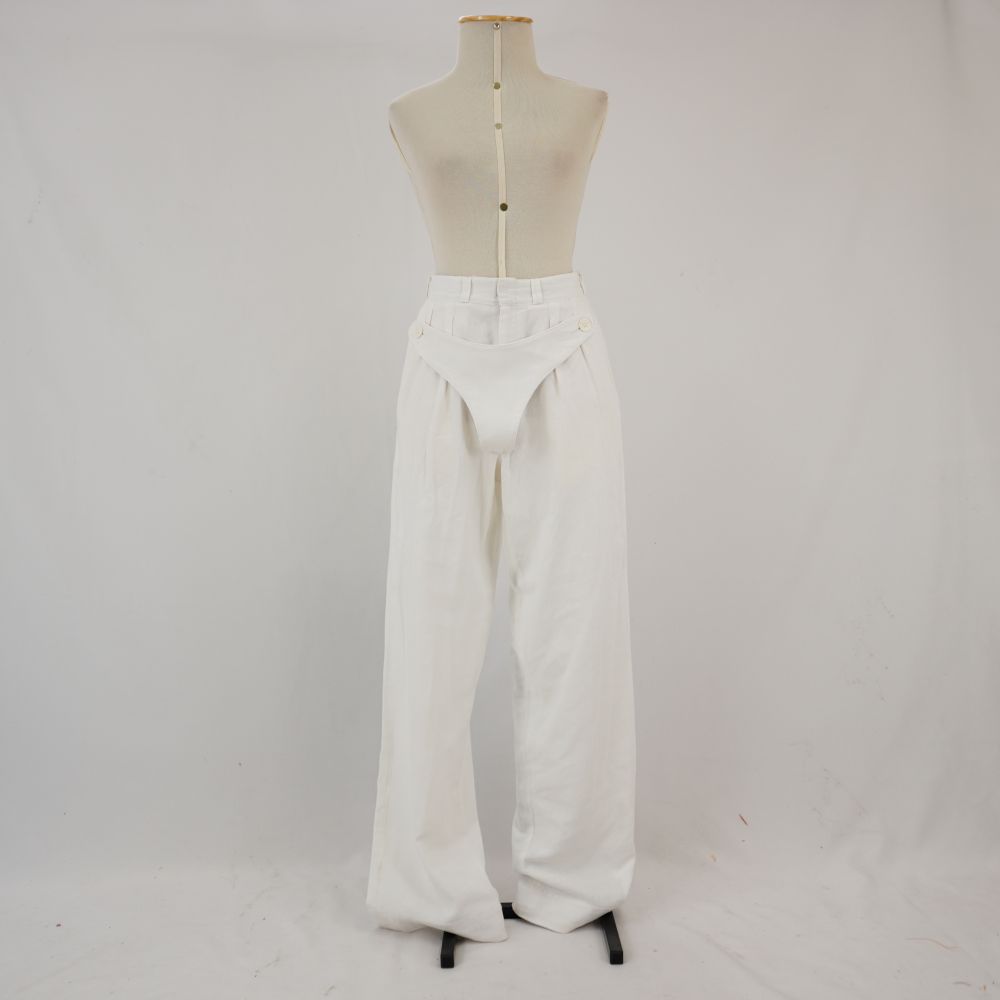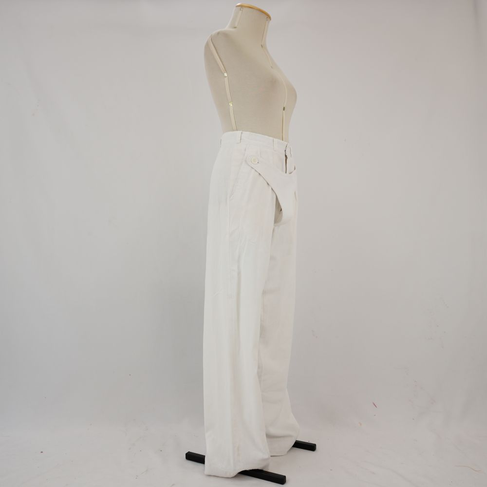 Calça de alfaiataria branca Heloísa de Lesbos Voltar U.RE.17.028b (1) U.RE.17.028b (2) U.RE.17.028b (3) Figurino completo U.RE.17.028 (1) Figurino completo U.RE.17.028 (3) Figurino completo U.RE.17.028 (2) Metadados Miniatura Compartilhe Número de TomboU.RE.17.028bTítuloCalça de alfaiataria branca Heloísa de LesbosDescriçãoCalça de alfaiataria branca com pregas e detalhe sobreposto semelhante a uma saqueira. Com dois bolsos frontais. Fechamento em zíper de plástico e colete de metal.LocalizaçãoSala 008EspetáculoO Rei da VelaAno do Espetáculo2017Autoria: figurinista/aderecista Gabriela Campos Quem vestiuSylvia PradoPersonagemHeloísa de LesbosColeçãoColeção RepertórioDimensões do Item - altura x largura (cm)112 x 66Material/Composição do ItemTela de tecido natural e bolsos com forro em cetim cruEstado de ConservaçãoBomData da Catalogaçãodezembro 10, 2025 Mais Informações NotasEtiqueta "DE LELLO" | Figurino completo composto por Camisa branca Heloísa de Lesbos - U.RE.17.028a Calça de alfaiataria branca Heloísa de Lesbos - U.RE.17.028b Colete branco Heloísa de Lesbos - U.RE.17.028c Paletó branco Heloísa de Lesbos - U.RE.17.028d Chapéu Panamá Heloísa de Lesbos - U.RE.17.028e Meia branca - U.RE.17.028f Continuar navegando Camisa branca Heloísa de Lesbos Colete branco Heloísa de Lesbos Voltar para a lista de itens