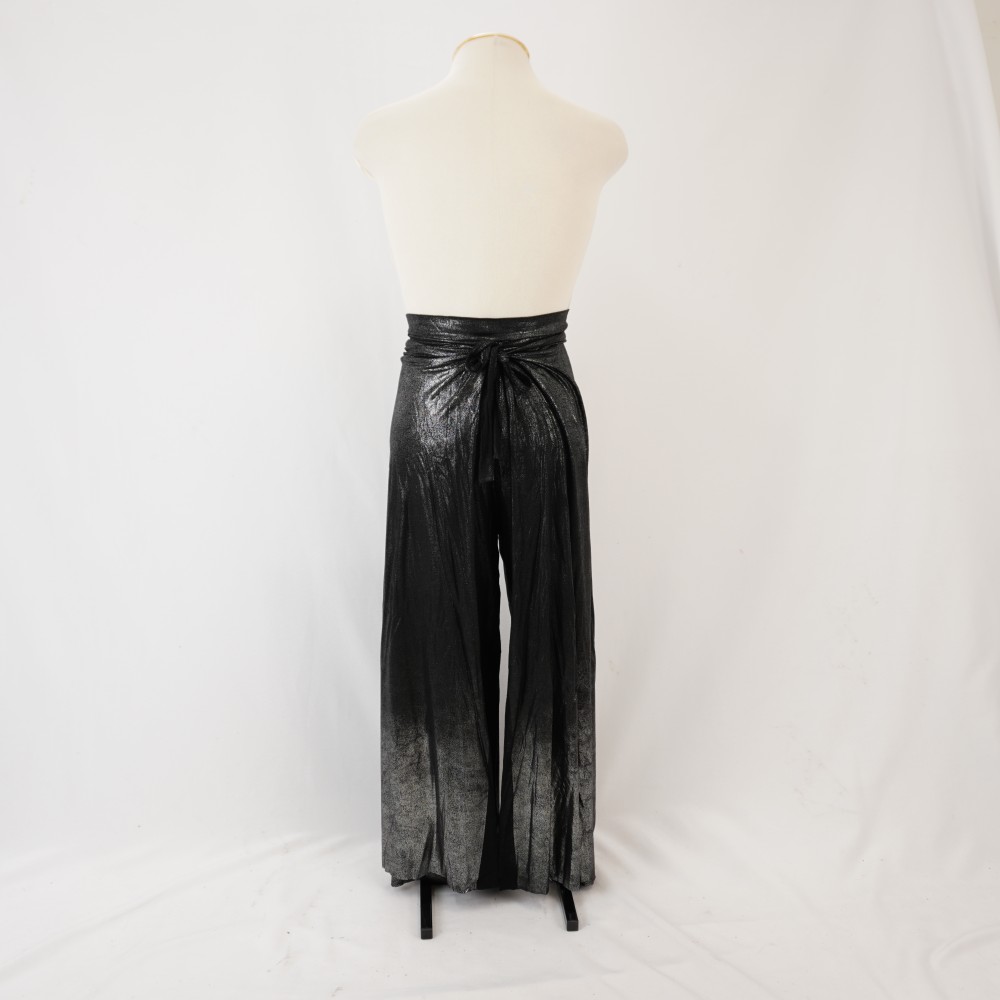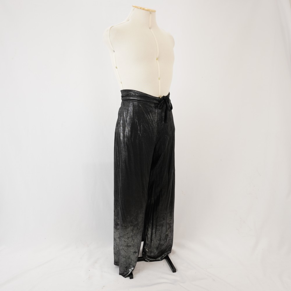 Calça preta brilhosa Voltar U.RO.18.002b (1) U.RO.18.002b (2) U.RO.18.002b (3) Figurino completo U.RO.18.002 (1) Figurino completo U.RO.18.002 (2) Figurino completo U.RO.18.002 (3) Metadados Miniatura Compartilhe Número de TomboU.RO.18.002bTítuloCalça preta brilhosaDescriçãoCalça preta com acabamento texturizado com brilho prateado, modelo envelope com amarração nas extremidades do cós. Barra a fio.LocalizaçãoSala 008EspetáculoRoda VivaAno do Espetáculo2018Autoria: figurinista/aderecista Sonia Ushiyama Quem vestiuIto AlvesPersonagemBandaColeçãoColeção RepertórioDimensões do Item - altura x largura (cm)105 x 102Material/Composição do ItemMalha sintéticaEstado de ConservaçãoBomData da Catalogaçãodezembro 18, 2025 Mais Informações NotasFigurino completo composto por Regata preta brilhosa - U.RO.18.002a Calça preta brilhosa - U.RO.18.002b Continuar navegando Regata preta brilhosa Regata preta brilhosa Voltar para a lista de itens