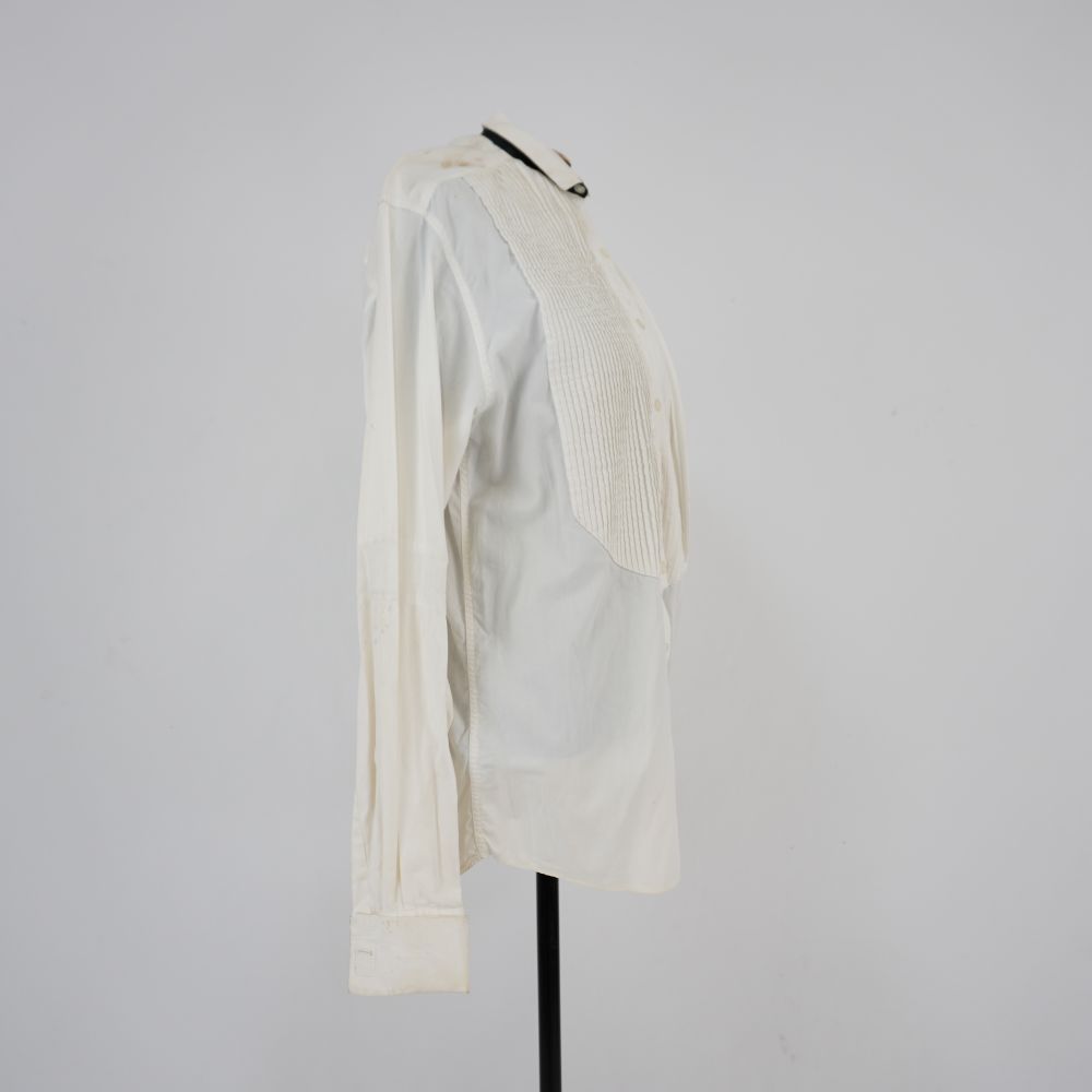 Camisa branca tipo smoking Vera Voltar U.PR.01.071 (1) U.PR.01.071 (2) U.PR.01.071 (3) Metadados Miniatura Compartilhe Número de TomboU.PR.01.071TítuloCamisa branca tipo smoking VeraDescriçãoCamisa branca tipo smoking de manga longa. Nervuras no toráx, pé da gola preto, com vista de botões decorativos. Fechamento em velcro no dianteiro e punhos.LocalizaçãoArara 004EspetáculoOs BandidosAno do Espetáculo2007Quem vestiuVera ValdezColeçãoColeção de Peças RarasDimensões do Item - altura x largura (cm)82 x 66Material/Composição do ItemTecido planoEstado de ConservaçãoRegularData da Catalogaçãonovembro 28, 2025 Mais Informações NotasInscrição: "VERA" Continuar navegando Casaqueto preto Parangolé Roda Viva Vera Voltar para a lista de itens