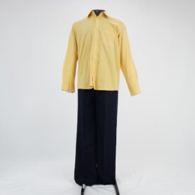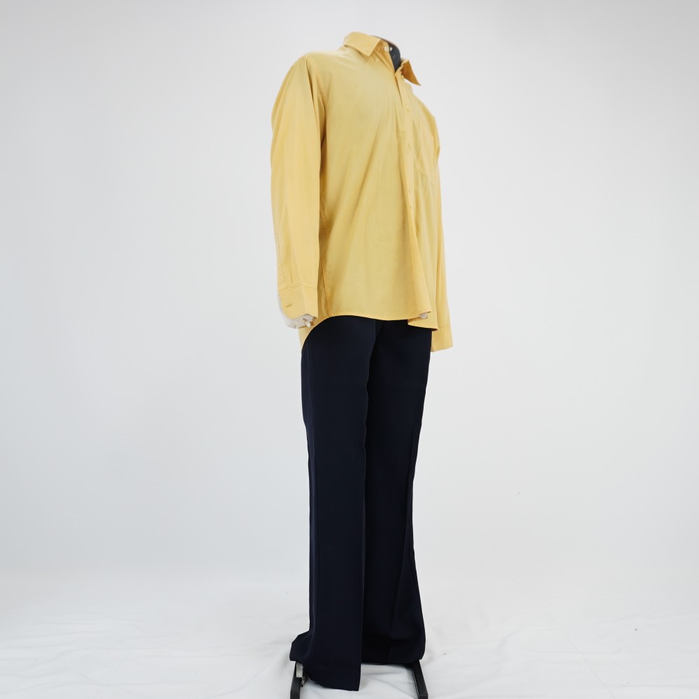 Camisa creme Voltar U.RC.22.012 (1) U.RC.22.012 (2) U.RC.22.012 (3) U.RC.22.012a (1) U.RC.22.012a (2) U.RC.22.012a (3) Metadados Miniatura Compartilhe Número de TomboU.RC.22.012aTítuloCamisa cremeDescriçãoCamisa creme de manga longa, colarinho com botões de plástico, sete botões de fechamento e dois botões em cada manga, bolso do lado esquerdo frontalLocalizaçãoArara 029EspetáculoRasga CoraçãoAno do Espetáculo2022Quem vestiuAkikànjú Robson da SilvaColeçãoColeção RepertórioDimensões do Item - altura x largura (cm)79 x 54Material/Composição do Item50% poliéster, 50% algodão, tecido plano mistoEstado de ConservaçãoBom Mais Informações NotasEscrito: "Robson" Etiqueta: La Ville 3 / 39-40 Figurino completo composto por U.RC.22.012a - Camisa creme U.RC.22.012b - Calça azul marinho Continuar navegando Vestido magenta Calça azul marinho Voltar para a lista de itens
