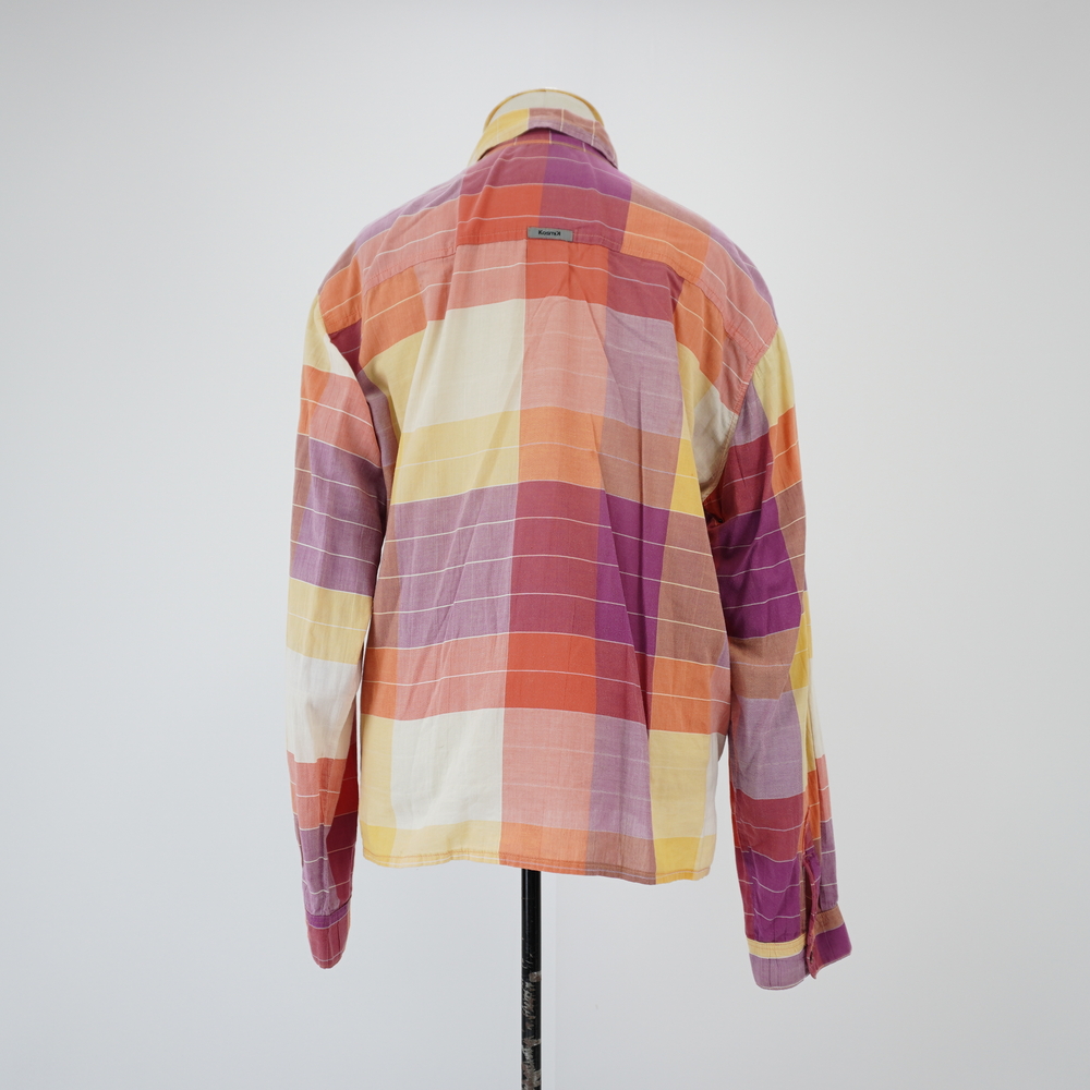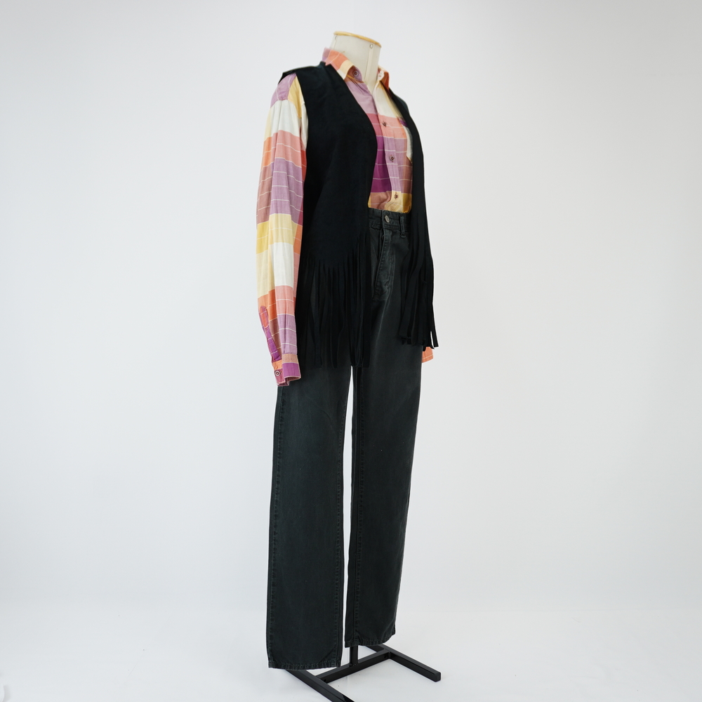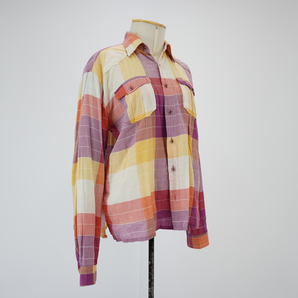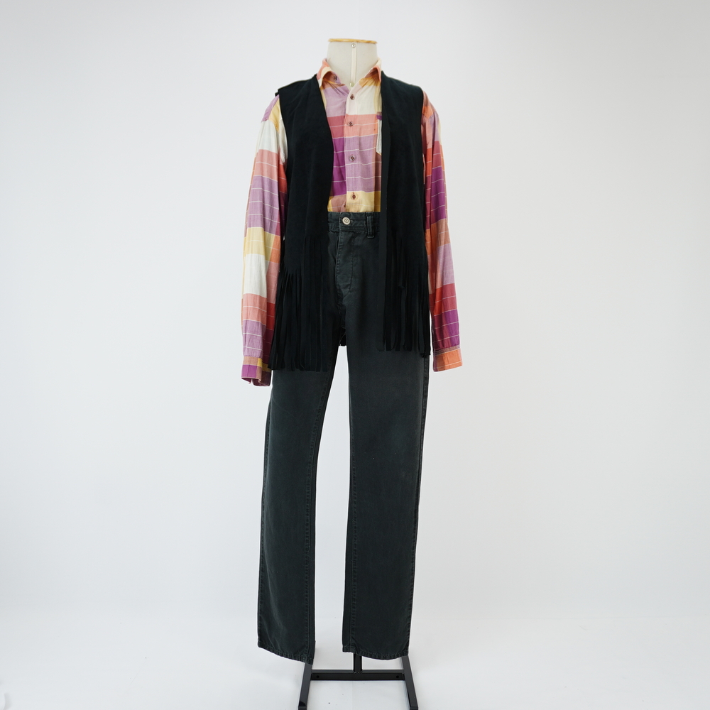 Camisa xadrez Roda Viva Voltar U.RO.18.030a (1) U.RO.18.030a (2) U.RO.18.030a (3) Figurino completo U.RO.18.030 (1) Figurino completo U.RO.18.030 (2) Figurino completo U.RO.18.030 (3) Metadados Miniatura Compartilhe Número de TomboU.RO.18.030aTítuloCamisa xadrez Roda VivaDescriçãoCamisa manga longa em xadrez em tons de rosa, amarelo, lilás e laranja, pala nos ombros, 2 bolsos frontais superiores aplicados com lapela e fechamento de botão, vista frontal com 7 botões e 1 extra e 1 em cada punhoLocalizaçãoSala 008EspetáculoRoda VivaAno do Espetáculo2018Autoria: figurinista/aderecista Sonia Ushiyama Quem vestiuTony ReisColeçãoColeção RepertórioDimensões do Item - altura x largura (cm)75 x 66Material/Composição do ItemTecido plano com algodão na composiçãoEstado de ConservaçãoBomData da Catalogaçãojaneiro 8, 2026 Mais Informações NotasFigurino completo composto por Camisa xadrez Roda Viva - U.RO.18.030a Colete preto franjas - U.RO.18.030b Calça de sarja preta - U.RO.18.030c Continuar navegando Cinto prateado Colete preto franjas Voltar para a lista de itens