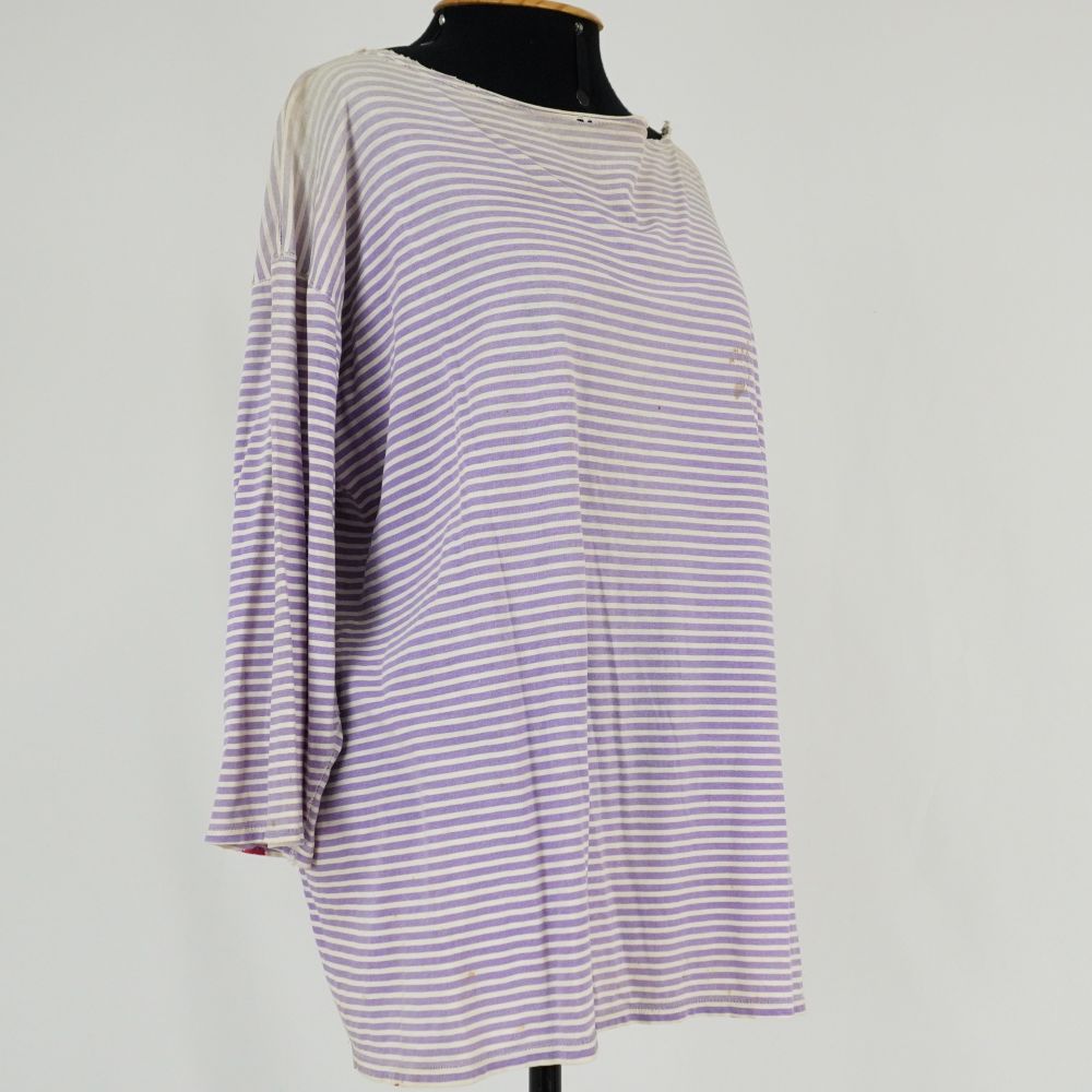 Camiseta listrada lilás e branco Voltar U.CC.08.029a (2) U.CC.08.029a (3) Figurino completo U.CC.08.029 Metadados Miniatura Compartilhe Número de TomboU.CC.08.029aTítuloCamiseta listrada lilás e brancoDescriçãoCamiseta ampla com manga 7/8 em malha listrada lilás e brancoLocalizaçãoArara 015EspetáculoCypriano e ChantalanAno do Espetáculo2008Autoria: figurinista/aderecista David Schumaker | Sonia Ushiyama Quem vestiuCélia NascimentoColeçãoColeção RepertórioDimensões do Item - altura x largura (cm)66 x 75Material/Composição do ItemMeia malha listrada lilás com brancoEstado de ConservaçãoRegularData da Catalogaçãooutubro 30, 2025 Mais Informações NotasFigurino completo composto por: Camiseta listrada lilás e branco - U.CC.08.029a Saia laranja floral Célia Nascimento - U.CC.08.029b Continuar navegando Vestido de veludo azul marinho com tule Saia laranja floral Célia Nascimento Voltar para a lista de itens