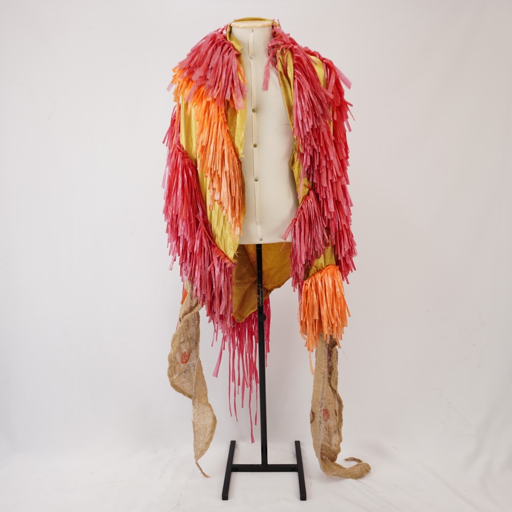 Capa amarela, vermelha e laranja Voltar U.BX.95.143 (1) U.BX.95.143 (2) U.BX.95.143 (3) Metadados Miniatura Compartilhe Número de TomboU.BX.95.143TítuloCapa amarela, vermelha e laranjaDescriçãoCapa de base de cetim amarelo com aplicação de franjas plásticas vermelhas e laranjas. Detalhe de faixas de juta pintada a mão com círculo marrom e laranja triangularLocalizaçãoSala 003EspetáculoBacantesAno do Espetáculo1995ColeçãoColeção RepertórioDimensões do Item - altura x largura (cm)150 x 88Material/Composição do ItemTecido plano sintético, cetim, juta e plásticoEstado de ConservaçãoBomData da Catalogaçãodezembro 18, 2025 Mais Informações Notas10 alfinetes. Estava na parte de dentro dos cogumelos, foi usado e adaptado para Macumba Antropófaga Continuar navegando Manto Tupinambá Camisa verde Voltar para a lista de itens
