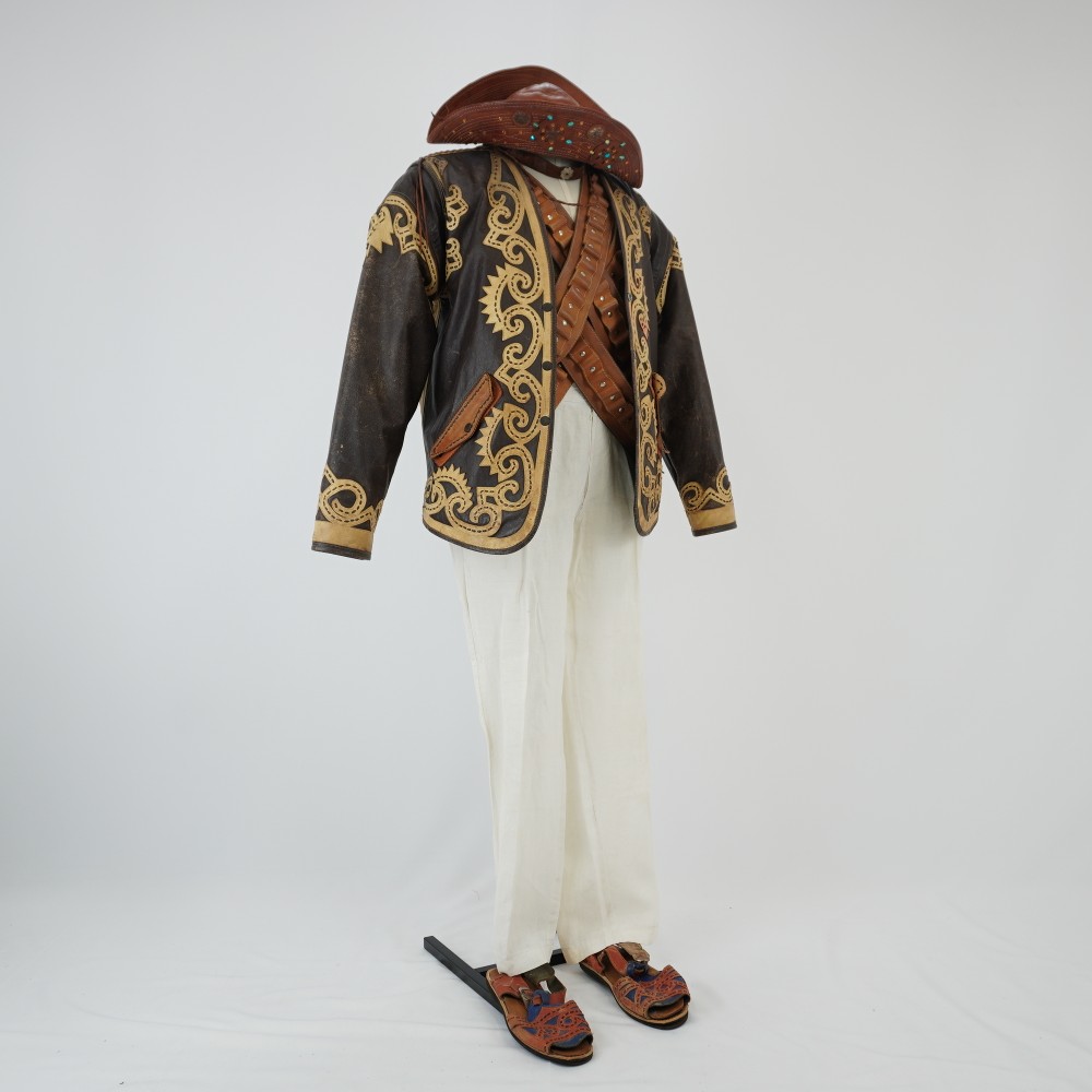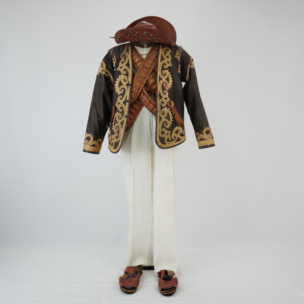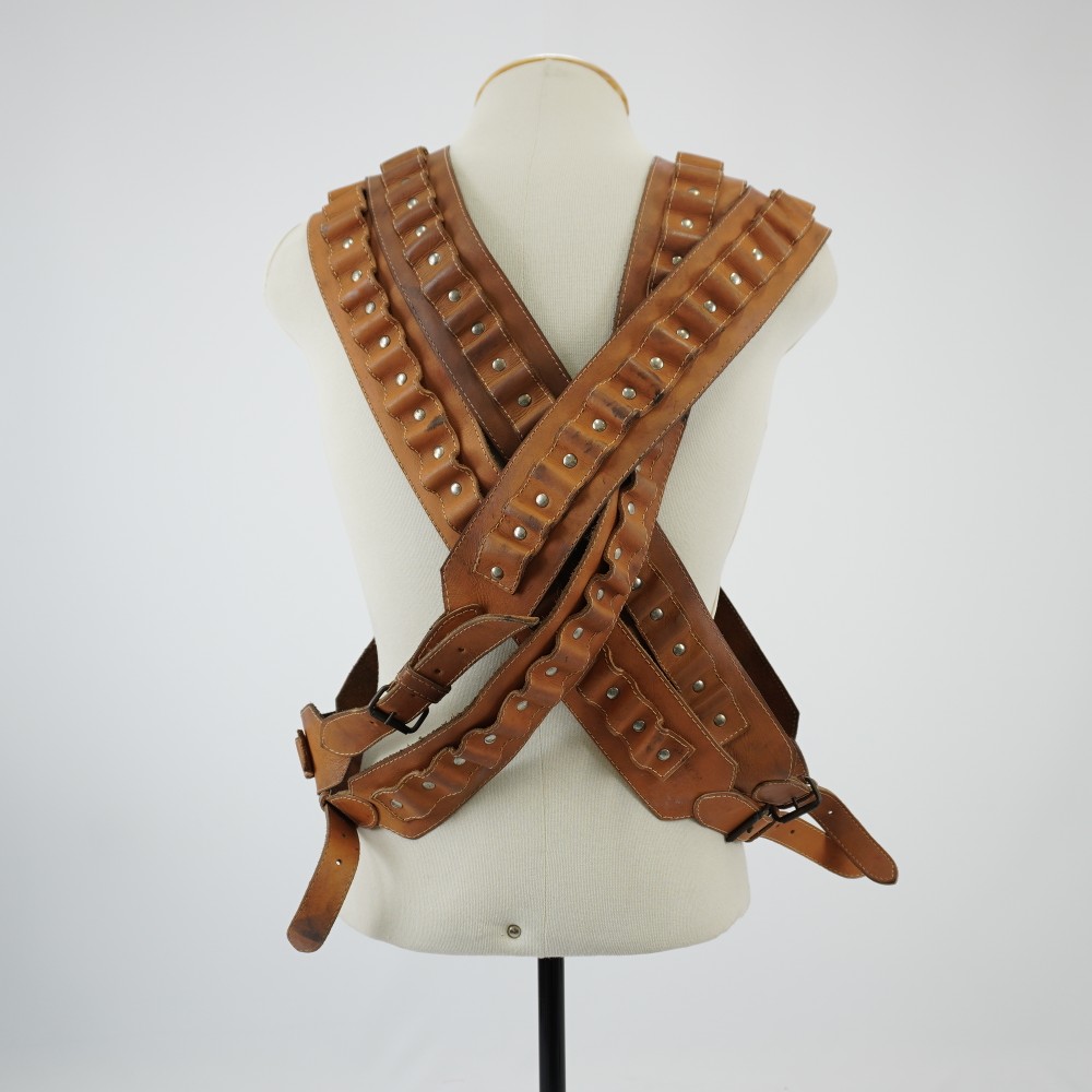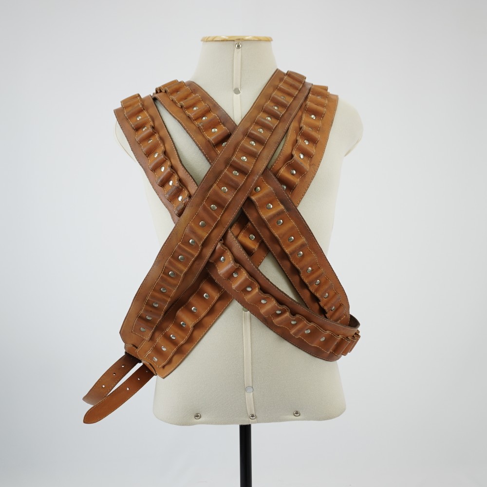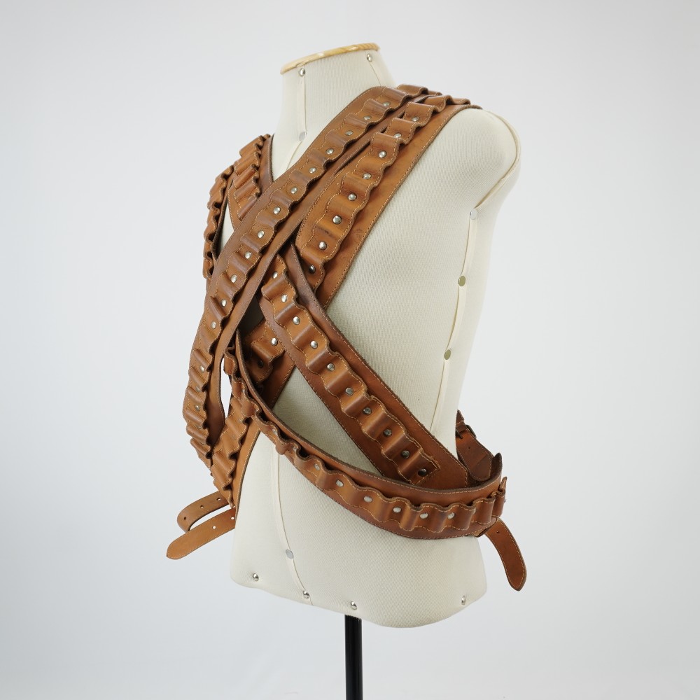 Cartucheira de Couro Lampião Voltar U.RO.18.063c (1) U.RO.18.063c (2) U.RO.18.063c (3) U.RO.18.063c (4) U.RO.18.063c (5) U.RO.18.063c (6) Figurino completo U.RO.18.063 (1) Figurino completo U.RO.18.063 (2) Figurino completo U.RO.18.063 (3) Metadados Miniatura Compartilhe Número de TomboU.RO.18.063cTítuloCartucheira de Couro LampiãoDescriçãoCartucheira caramelo com 39 divisórias, rebites prata e fechamento em fivela de latão oxidadoLocalizaçãoSala 008EspetáculoRoda VivaAno do Espetáculo2018Quem vestiuRoderick HimerosPersonagemBenedito Silva LampiãoColeçãoColeção RepertórioDimensões do Item - altura x largura (cm)168 x 7Material/Composição do ItemCouro e aviamentos de metalEstado de ConservaçãoBomData da Catalogaçãojaneiro 20, 2026 Mais Informações NotasFigurino completo composto por U.RO.18.063a - Jaqueta Couro Gibão U.RO.18.063b - Chapéu Lampião U.RO.18.063c - Cartucheira de couro Lampião U.RO.18.063d - Sandália de couro Lampião Continuar navegando Jaqueta Couro Gibão Capa preta de coro Voltar para a lista de itens