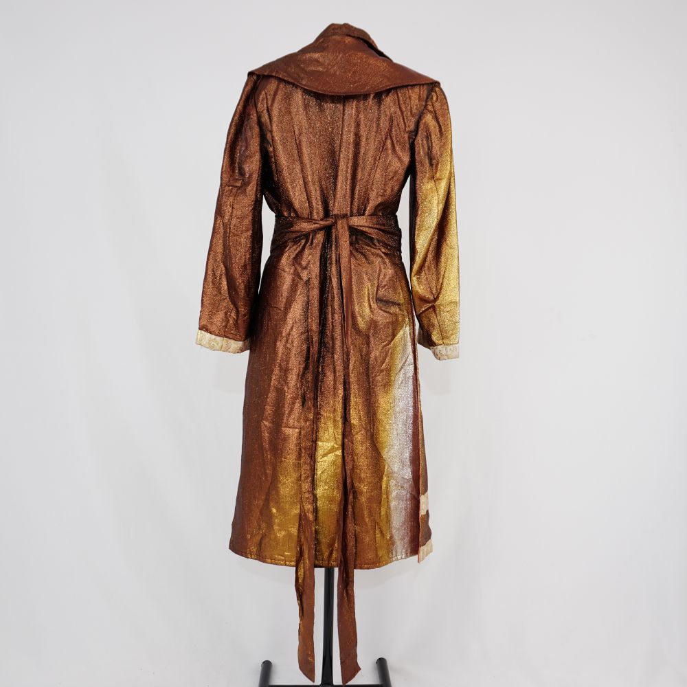 Casaco em lurex marrom e dourado Voltar U.CC.08.024 (2) U.CC.08.024 (3) Metadados Miniatura Compartilhe Número de TomboU.CC.08.024TítuloCasaco em lurex marrom e douradoDescriçãoCasaco em lurex marrom e dourado, gola dupla, Jacquara bege com estampa dourada na brra, punho e decote. Forro vermelho, faixa em lurex costuradas na cintura para amarração e viés preto para amarração no busto e cinturaLocalizaçãoArara 015EspetáculoCypriano e ChantalanAno do Espetáculo2008Autoria: figurinista/aderecista David Schumaker | Sonia Ushiyama Quem vestiuAriclenes BarrosoPersonagemCoro criançasColeçãoColeção RepertórioDimensões do Item - altura x largura (cm)118 x 90Material/Composição do ItemLurex, Jacquara e forro de tecido plano naturalEstado de ConservaçãoRegularData da Catalogaçãooutubro 28, 2025 Continuar navegando Vestido curto Dourado Saia Godê colorida Voltar para a lista de itens