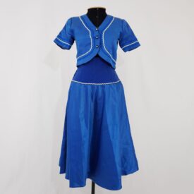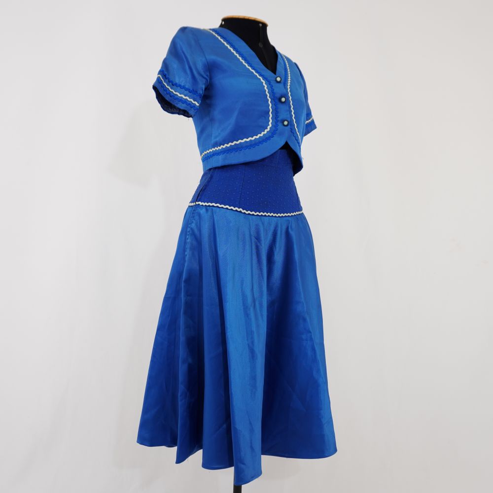 Casaqueto azul Celeste Voltar U.BO.99.019b (2) U.BO.99.019b (3) Figurino completo U.BO.99.019 (1) Figurino completo U.BO.99.019 (2) Figurino completo U.BO.99.019 (3) Metadados Miniatura Compartilhe Número de TomboU.BO.99.019aTítuloCasaqueto azul CelesteDescriçãoCasaqueto manga curta, azul royal em cetim, sianinhas brancas e azuis costuradas na barra da manga, decote/abertura e barra da blusa. Forro no mesmo tecido, fechamento em colchete, botão de pressão e botões decorativos de plásticoLocalizaçãoArara 013EspetáculoBoca de OuroAno do Espetáculo1999 | 2000 | 2001Autoria: figurinista/aderecista Olintho Malaquias Quem vestiuCamila MotaPersonagemCelesteColeçãoColeção RepertórioDimensões do Item - altura x largura (cm)41 x 52Material/Composição do ItemCetim, colchete, botões de pressão e botão plásticoEstado de ConservaçãoBomData da Catalogaçãooutubro 16, 2025 Mais Informações NotasFigurino completo composto por: Casaqueto azul Celeste - U.BO.99.019a Saia longuete azul Celeste - U.BO.99.019b Continuar navegando Blusa de tricô branca Boca de ouro Saia longuete azul Celeste Voltar para a lista de itens