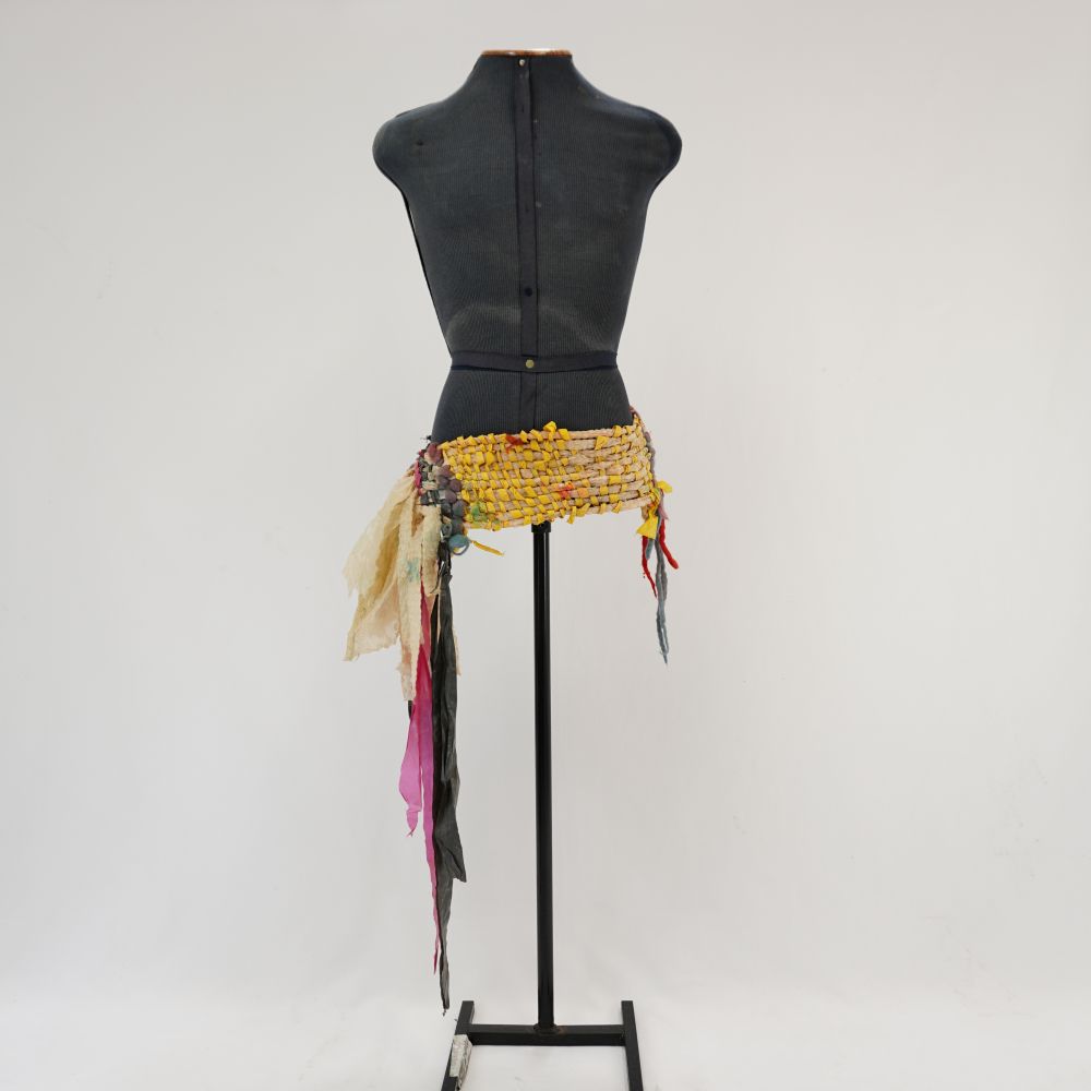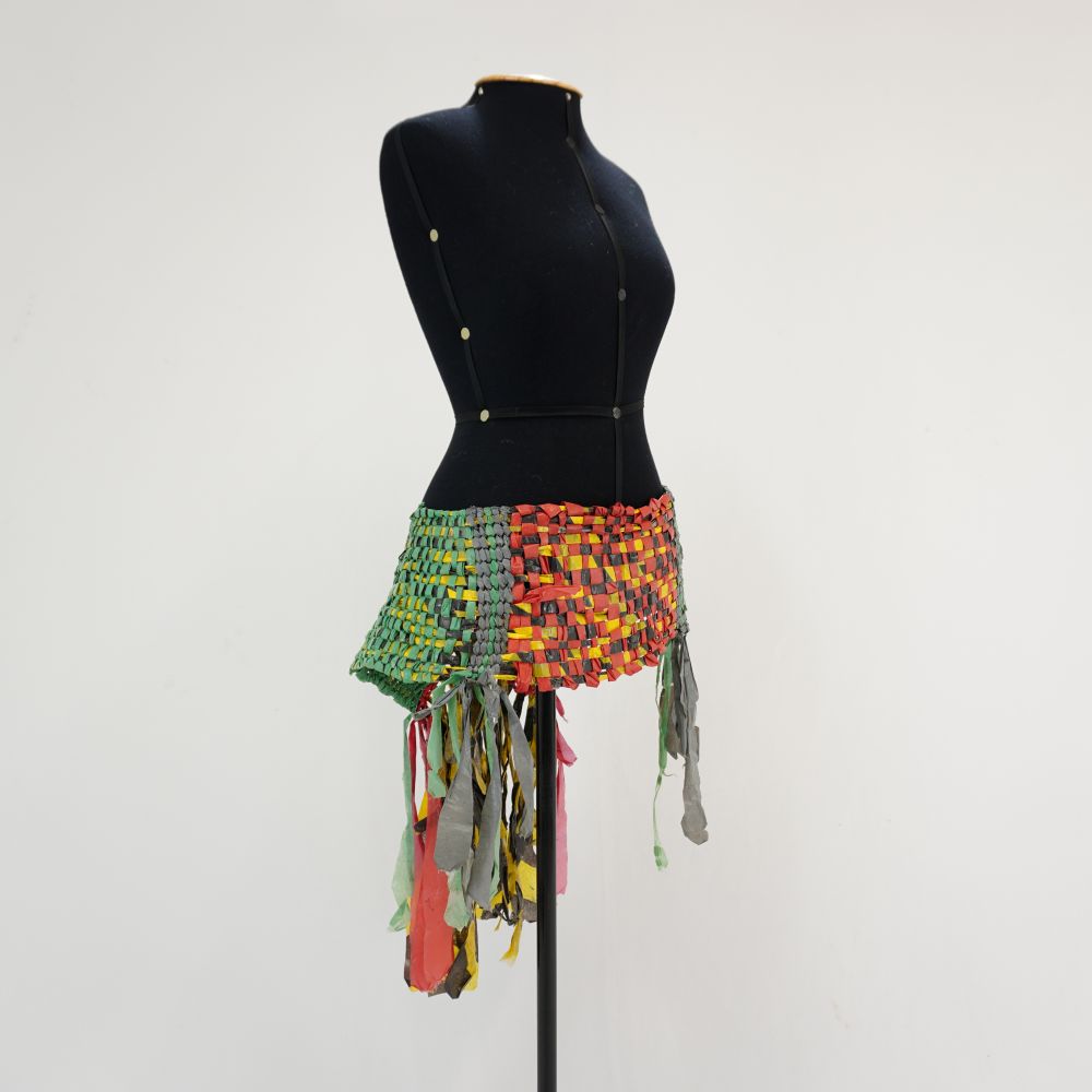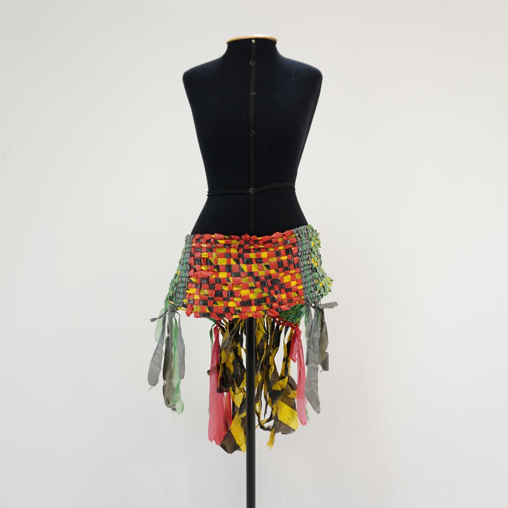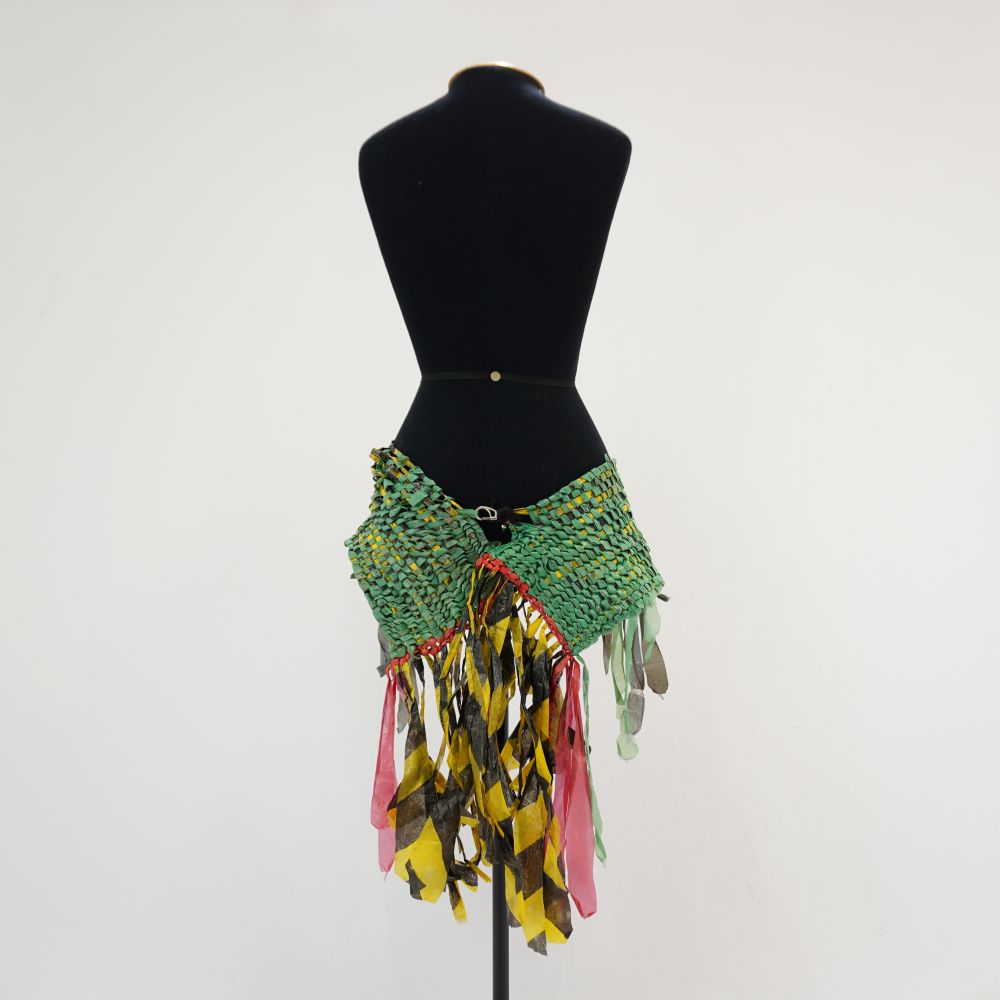 Cinto em tear de plástico Coro Voltar U.MA.11.015 (1) U.MA.11.015 (2) U.MA.11.015 (3) Metadados Miniatura Compartilhe Número de TomboU.MA.11.015TítuloCinto em tear de plástico CoroDescriçãoCinto feito no tear de plástico verde, amarelo, cinza, preto, vermelho e faixa de sinalização listrada preta e amarela, fechamento com mosquetão envolto de fio acrílicoLocalizaçãoSala 008EspetáculoMacumba AntropófagaAno do Espetáculo2011 | 2012 | 2017PersonagemCoroColeçãoColeção RepertórioDimensões do Item - altura x largura (cm)20 x 145Material/Composição do ItemPlástico e metalEstado de ConservaçãoRegularData da Catalogaçãodezembro 2, 2025 Mais Informações NotasUsado com cocar de canudinhos e pintura corporal Continuar navegando Cinto em tear de plástico Coro Cinto em tear de plástico Coro Voltar para a lista de itens