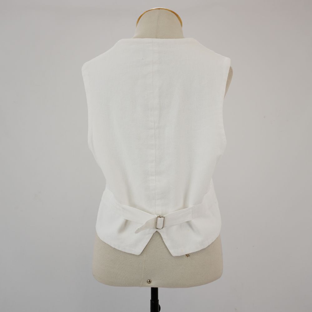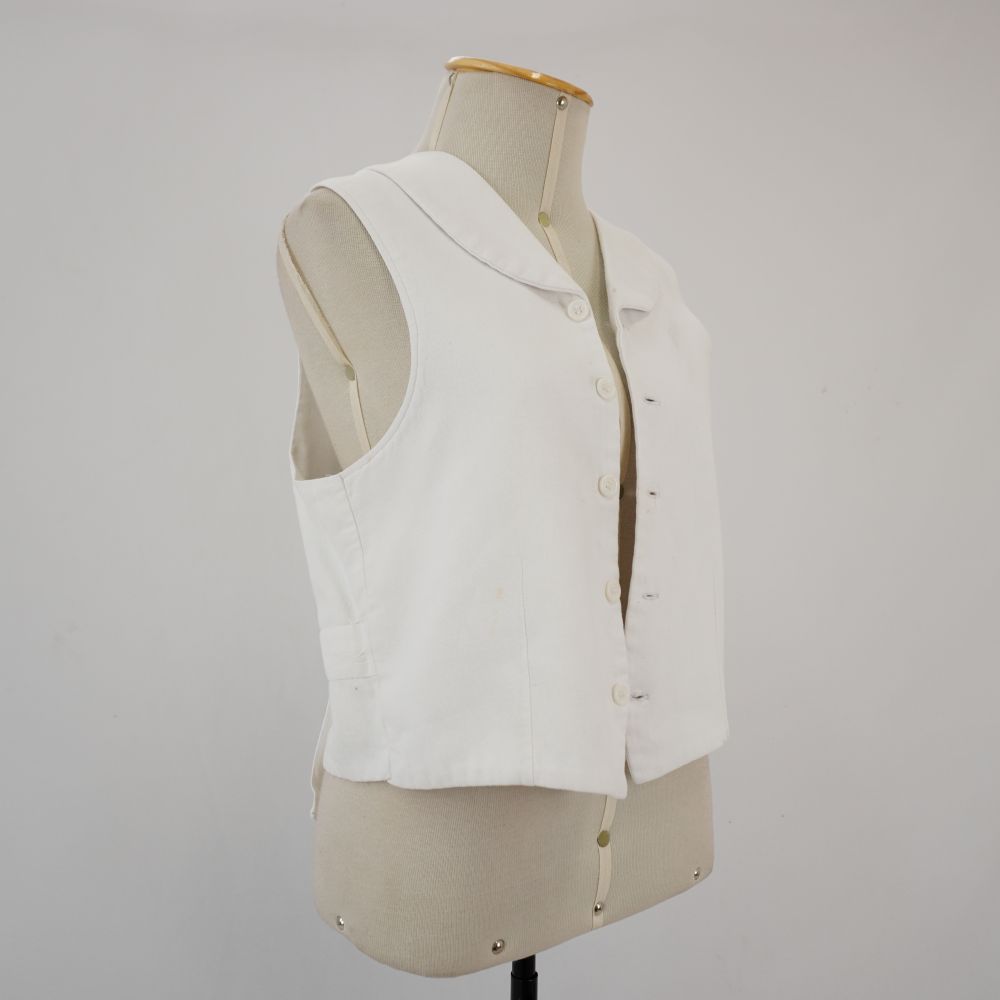 Colete branco Heloísa de Lesbos Voltar U.RE.17.028c (1) U.RE.17.028c (2) U.RE.17.028c (3) Figurino completo U.RE.17.028 (1) Figurino completo U.RE.17.028 (3) Figurino completo U.RE.17.028 (2) Metadados Miniatura Compartilhe Número de TomboU.RE.17.028cTítuloColete branco Heloísa de LesbosDescriçãoColete feminino branco com lapela arredondada. Fechamento em botões de plástico e com regulador de metal nas costasLocalizaçãoSala 008EspetáculoO Rei da VelaAno do Espetáculo2017Autoria: figurinista/aderecista Gabriela Campos Quem vestiuSylvia PradoPersonagemHeloisa de LesbosColeçãoColeção RepertórioDimensões do Item - altura x largura (cm)55 x 50Material/Composição do ItemTela de tecido naturalEstado de ConservaçãoBomData da Catalogaçãodezembro 10, 2025 Mais Informações NotasEtiqueta "DE LELLO" | Figurino completo composto por Camisa branca Heloísa de Lesbos - U.RE.17.028a Calça de alfaiataria branca Heloísa de Lesbos - U.RE.17.028b Colete branco Heloísa de Lesbos - U.RE.17.028c Paletó branco Heloísa de Lesbos - U.RE.17.028d Chapéu Panamá Heloísa de Lesbos - U.RE.17.028e Meia branca - U.RE.17.028f Continuar navegando Calça de alfaiataria branca Heloísa de Lesbos Paletó branco Heloísa de Lesbos Voltar para a lista de itens