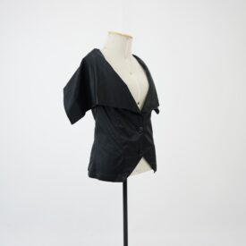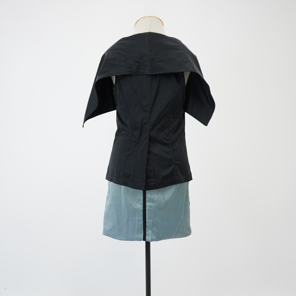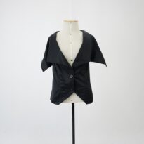 Colete preto Voltar U.AC.12.001b (1) U.AC.12.001b (2) U.AC.12.001b (3) U.AC.12.001 (1) U.AC.12.001 (2) U.AC.12.001 (3) Metadados Miniatura Compartilhe Número de TomboU.AC.12.001bTítuloColete pretoDescriçãoColete preto com gola ampla, dois bolsos embutidos na parte inferior frontal, modelagem com recorte princesa frente e costas, fenda no meio costas e fechamento em dois botões de plástico e um colchete de gancho.LocalizaçãoArara 022EspetáculoAcordesAno do Espetáculo2012Autoria: figurinista/aderecista Sonia Ushiyama PersonagemCoroColeçãoColeção RepertórioDimensões do Item - altura x largura (cm)78 x 50Material/Composição do ItemTecido plano acetinado 97% poliéster e 3% elastanoEstado de ConservaçãoBomData da Catalogaçãojaneiro 27, 2026 Mais Informações Notas"Figurino completo composto por U.AC.12.001a O colete possui mais três réplicas iguais. Marca Lou Lou, Tam P Continuar navegando Vestido verde acinzentado Camisa xadrez preto e magenta Voltar para a lista de itens