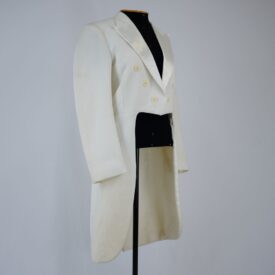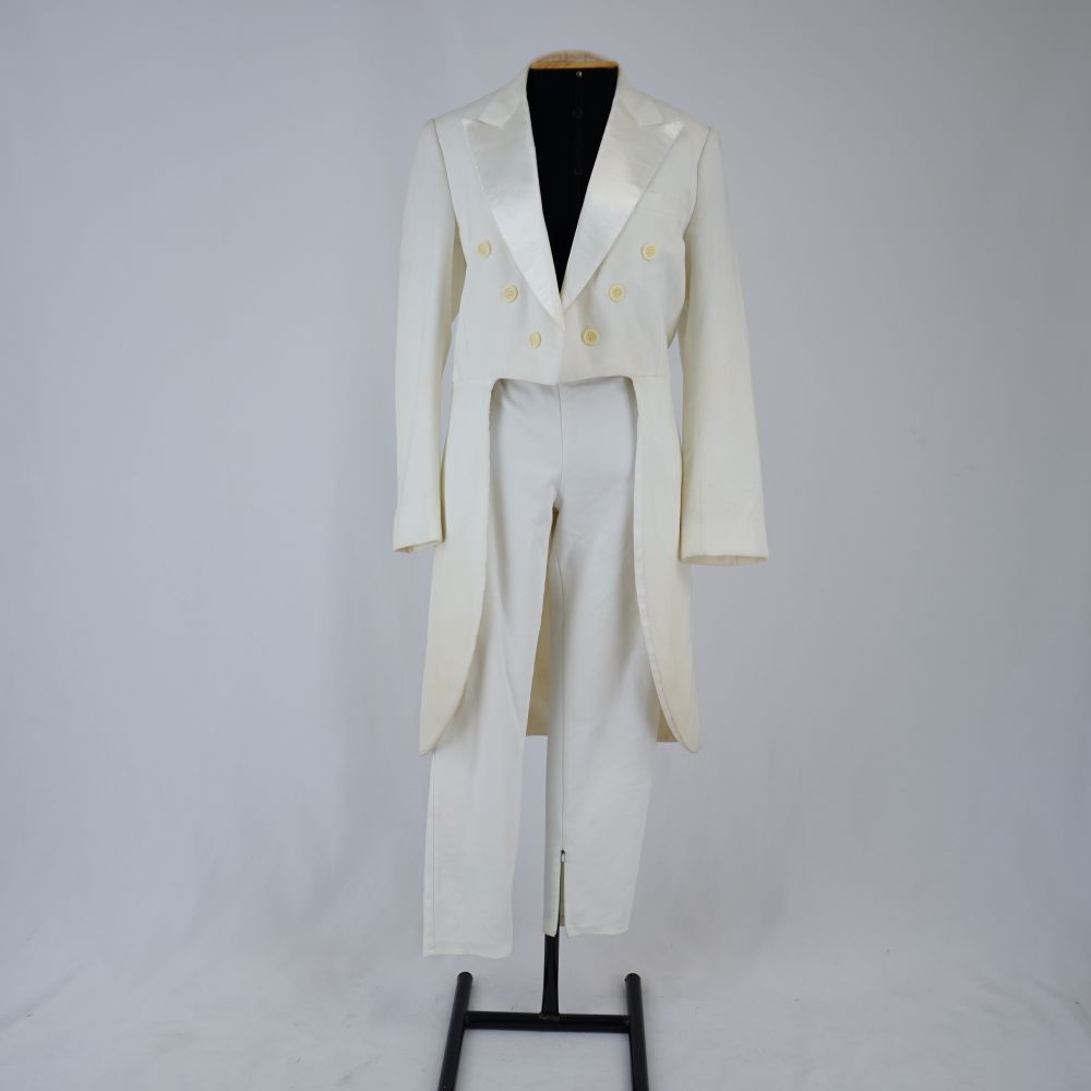 Fraque branco Voltar Figurino completo - U.C5.14.003 U.C5.14.003a (2) U.C5.14.003a (3) Metadados Miniatura Compartilhe Número de TomboU.C5.14.003aTítuloFraque brancoDescriçãoFraque branco, tecido levemente acetinado, um bolso externo e dois internos. Botões nas duas vistas, lapela em cetim branco, com forro, dois botões nas mangas e dois nas costasLocalizaçãoSala 003EspetáculoCacilda!!!!!Ano do Espetáculo2014Quem vestiuJoana MedeirosColeçãoColeção RepertórioDimensões do Item - altura x largura (cm)99 x 64Material/Composição do ItemSarja levemente acetinada, cetim e tecido plano tafetáEstado de ConservaçãoRegularData da Catalogaçãonovembro 5, 2025 Mais Informações NotasFigurino completo composto por: Fraque branco - U.C5.14.003a Legging branca - U.C5.14.003b Continuar navegando Casaco vermelho Legging branca Voltar para a lista de itens