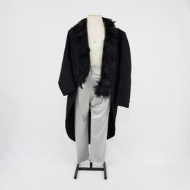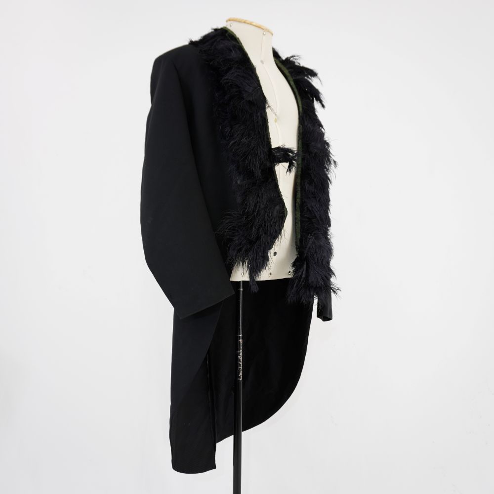 Fraque preto Voltar Figurino completo U.MA.17.008a (2) Figurino completo U.MA.17.008a (3) U.MA.17.008 (1) U.MA.17.008 (2) U.MA.17.008 (3) Metadados Miniatura Compartilhe Número de TomboU.MA.11.008aTítuloFraque pretoDescriçãoFraque preto forrado com aplicação de aviamentos de penas pretas por todo o decote. 1 bolso na lateral esquerda e 1 bolso interno. 2 botões ornamentais nas costas.LocalizaçãoSala 008EspetáculoMacumba AntropófagaAno do Espetáculo2017Quem vestiuRoderick HimerosColeçãoColeção RepertórioDimensões do Item - altura x largura (cm)117 x 75Material/Composição do ItemTecido plano sintéticoEstado de ConservaçãoRegularData da Catalogaçãonovembro 28, 2025 Mais Informações NotasEtiqueta: "MALESKI" | Figurino completo composto por: Fraque preto - U.MA.11.008a Calça cinza reta - U.MA.11.008b Continuar navegando Gola Robespierre 3 Calça cinza reta Voltar para a lista de itens