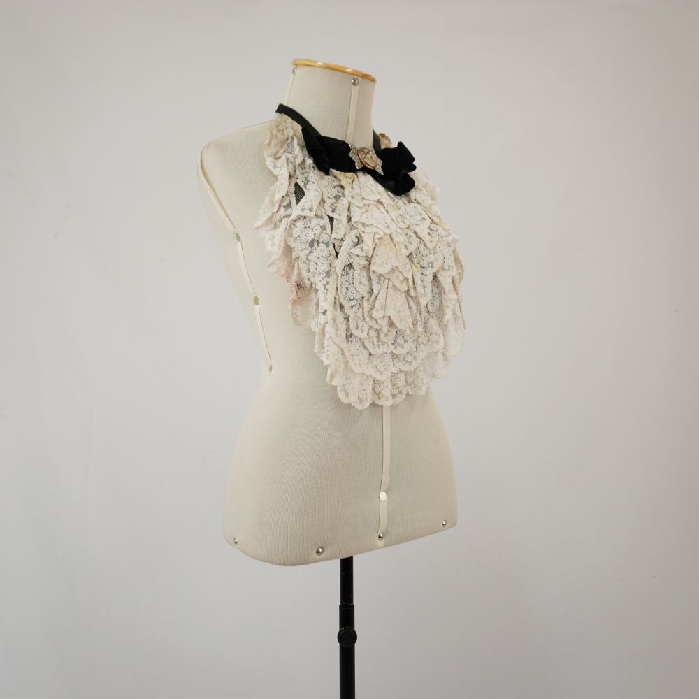 Jabô bordado branco Cesarina Voltar U.RE.17.007c (1) U.RE.17.007c (3) U.RE.17.007c (2) Figurino completo U.RE.17.007 (1) Figurino completo U.RE.17.007 (3) Figurino completo U.RE.17.007 (2) U.RE.17.007fg (1) U.RE.17.007fg (2) U.RE.17.007fg (3) Metadados Miniatura Compartilhe Número de TomboU.RE.17.007cTítuloJabô bordado branco CesarinaDescriçãoJabô em tule bordado branco com base em tule filó, viés de cetim com amarração e aplicações de fita de veludo como laço e broche camafeu com detalhe prateadoLocalizaçãoSala 008EspetáculoO Rei da VelaAno do Espetáculo2017Autoria: figurinista/aderecista Gabriela Campos Quem vestiuJoana MedeirosPersonagemCesarinaColeçãoColeção RepertórioDimensões do Item - altura x largura (cm)48 x 54Material/Composição do ItemTule filó sintético e tule borda sintético, fita de veludo sintética e fita de cetim sintéticaEstado de ConservaçãoRegularData da Catalogaçãodezembro 9, 2025 Mais Informações NotasFigurino completo composto por Body vermelho Cesarina - U.RE.17.007a Faixa rosa com flores Cesarina - U.RE.17.007b Jabô bordado branco Cesarina - U.RE.17.007c Meia calça arrastão Cesarina - U.RE.17.007d Elástico vermelho Cesarina - U.RE.17.007e Continuar navegando Faixa rosa com flores Cesarina Meia calça arrastão Cesarina Voltar para a lista de itens
