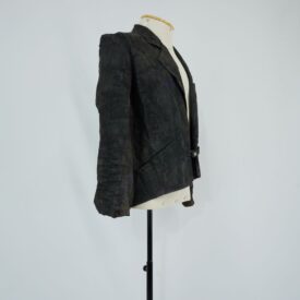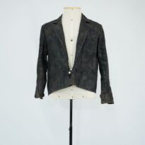 Jaqueta pintada de preto Cuca Menino Godot Voltar U.C1.98.001 (2) U.C1.98.001 (3) Metadados Miniatura Compartilhe Número de TomboU.C1.98.001TítuloJaqueta pintada de preto Cuca Menino GodotDescriçãoJaqueta de tecido azul que foi toda pintada e preto, três bolsos frontais, fechamento com um botão e escrito em tinta branca na parte das costas "Treplev 11)LocalizaçãoArara 012EspetáculoCacilda!Ano do Espetáculo1998Quem vestiuFlávio RochaPersonagemCuca Menino GodotColeçãoColeção RepertórioDimensões do Item - altura x largura (cm)72 x 44Material/Composição do ItemTecido planoEstado de ConservaçãoRegularData da Catalogaçãooutubro 9, 2025 Continuar navegando Blusa/penuar de renda preta com franjas e frufru Vestido vermelho com cinto de castidade Cacilda! Voltar para a lista de itens