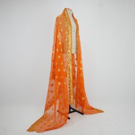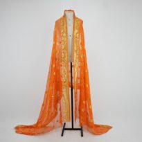 Lenço laranja com dourado Voltar U.CC.08.016 (1) U.CC.08.016 (2) U.CC.08.016 (3) Metadados Miniatura Compartilhe Número de TomboU.CC.08.016TítuloLenço laranja com douradoDescriçãoLenço retangular de tecido leve laranja com brocados dourados em duas laterais e nos detalhes circulares entre as barras por toda a peça. Duas laterais com barra a fio e outras duas terminam na aurela do tecidoLocalizaçãoArara 016EspetáculoCypriano e ChantalanAno do Espetáculo2008ColeçãoColeção RepertórioDimensões do Item - altura x largura (cm)301 x 110Material/Composição do ItemTecido plano natural com brocados metalizados sintéticosEstado de ConservaçãoBomData da Catalogaçãofevereiro 26, 2026 Continuar navegando Faixa de beca azul Saia curta preta Voltar para a lista de itens