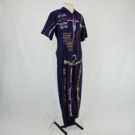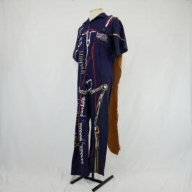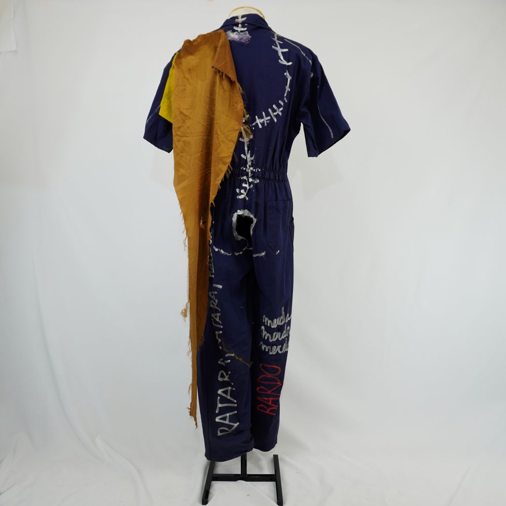 Macacão azul marinho pintado a mão Juízo de Deus Voltar U.JD.15.013 (3) U.JD.15.013 (2) U.JD.15.013 (4) Metadados Miniatura Compartilhe Número de TomboU.JD.15.013TítuloMacacão azul marinho pintado a mão Juízo de DeusDescriçãoMacacão azul marinho de manga curta, com quatro bolsos frontais, pintura a mão com desenhos e palavras: peido, Kre Pukte, punheta; aplicação de tecidos atrás colados com cola quente, fura na bundaLocalizaçãoArara 006EspetáculoPara Dar um Fim no Juízo de DeusAno do Espetáculo2015Autoria: figurinista/aderecista Carila Matzenbacher | Clarissa Moraes | Marília Gallmeister ColeçãoColeção RepertórioDimensões do Item - altura x largura (cm)161 x 79Material/Composição do ItemSarja, botões plásticos, tinta e cola quenteEstado de ConservaçãoRegularData da Catalogaçãosetembro 18, 2025 Continuar navegando Camisa branca de manga curta com gola Menino Artaud Bata bege com pintura a mão Voltar para a lista de itens