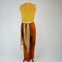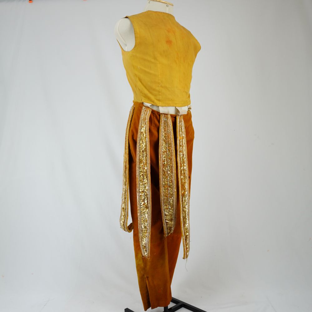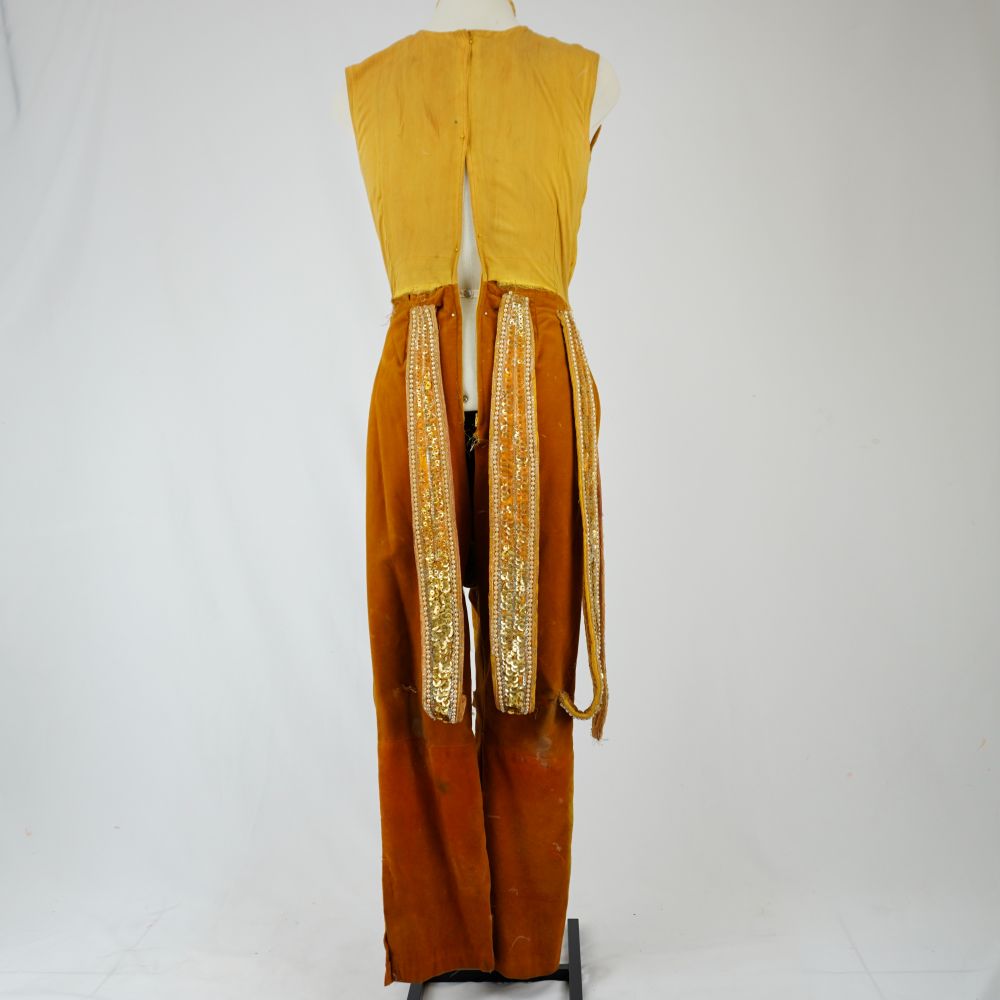 Macacão Clovis Bornay Voltar U.EL.97.003a (2) U.EL.97.003a (3) U.EL.97.003 (1) U.EL.97.003 (2) Metadados Miniatura Compartilhe Número de TomboU.EL.97.003aTítuloMacacão Clovis BornayDescriçãoMacacão de carnaval cor ocre, calça de veludo com 6 faixas de paetê dourado e transparente e perolas. Parte superior fixada com elásticos.LocalizaçãoArara 010EspetáculoElaAno do Espetáculo1997Quem vestiuMarcelo DrummondPersonagemMestre de cerimôniasColeçãoColeção RepertórioDimensões do Item - altura x largura (cm)155 x 45Material/Composição do ItemVeludo e tecido planoEstado de ConservaçãoRuimData da Catalogaçãooutubro 8, 2025 Mais Informações NotasPeça pertencia a Clovis Bornay | Figurino completo composto por: Macacão Clovis Bornay - U.EL.97.003a Capa de veludo vermelho - U.EL.97.003b Continuar navegando Roupa de carnaval – Clovis Bornay Capa de veludo vermelho Voltar para a lista de itens