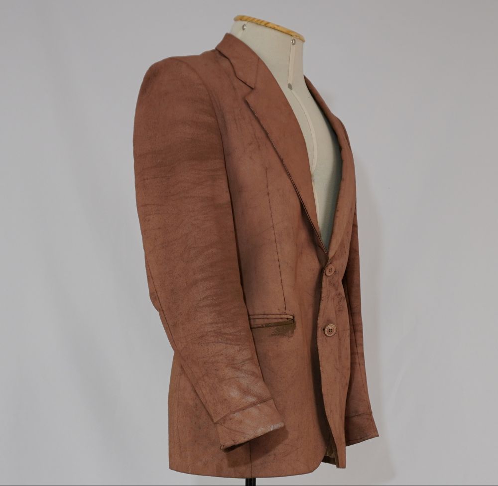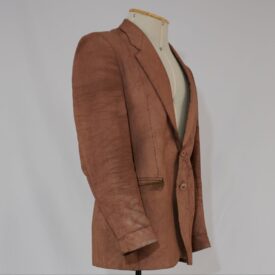 Paletó pintado bege rosado Voltar U.BO.99.003a (2) U.BO.99.003a (3) Figurino completo - U.BO.99.003 (1) Figurino completo - U.BO.99.003 (2) Figurino completo - U.BO.99.003 (3) Metadados Miniatura Compartilhe Número de TomboU.BO.99.003aTítuloPaletó pintado bege rosadoDescriçãoPaletó com três bolsos frontais, fechamento em botão de plástico, quatro bolsos internos, forro bege amarelado, peça e botões pintados de bege rosadoLocalizaçãoArara 013EspetáculoBoca de OuroAno do Espetáculo1999 | 2000 | 2001Autoria: figurinista/aderecista Olintho Malaquias PersonagemSeu AgenorColeçãoColeção RepertórioDimensões do Item - altura x largura (cm)83 x 59Material/Composição do Item67% poliéster 33% viscoseEstado de ConservaçãoRegularData da Catalogaçãooutubro 15, 2025 Mais Informações NotasFigurino completo composto por: Paletó pintado bege rosado - U.BO.99.003a Calça alfaiataria pintada bege rosado - U.BO.99.003b Cinto de couro - U.BO.99.003c Continuar navegando Duas flores vermelhas com base dourada Calça alfaiataria pintada bege rosado Voltar para a lista de itens