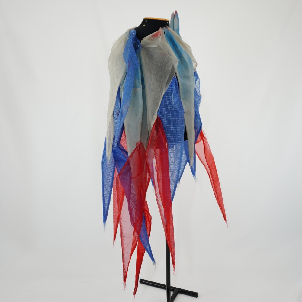 Parangolé com formas ponteagudas Anjo Serafim Voltar U.MG.15.038a (3) U.MG.15.038a (1) U.MG.15.038a (2) U.MG.15.038 U.MG.15.038a (1) Metadados Miniatura Compartilhe Número de TomboU.MG.15.038aTítuloParangolé com formas ponteagudas Anjo SerafimDescriçãoParangolé feito de tela transparente nas cores branco, azul e vermelho, figurino composto por dezenas de elementos com a mesma forma ponteaguda costuradas uns aos outros, compondo um manto/parangoléLocalizaçãoArara 006EspetáculoMistérios GozózosAno do Espetáculo2015Autoria: figurinista/aderecista Gabriela Campos | Ricardo Costa Quem vestiuRoderick HimerosPersonagemAnjo SerafimColeçãoColeção RepertórioDimensões do Item - altura x largura (cm)120 x 65Material/Composição do ItemTela transparente, tintaData da Catalogaçãosetembro 18, 2025 Mais Informações NotasFigurino completo composto por: Parangolé com formas pontiagudas Anjo Serafim - U.MG.15.038a Calça de paetê branca Anjo Serafim - U.MG.15.038b Continuar navegando Shorts com cauda branco Juízo – Coro Calça de paetê branca Anjo Serafim Voltar para a lista de itens