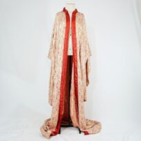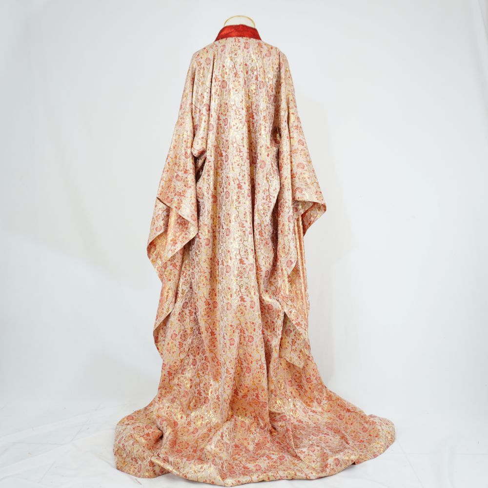 Quimono dourado Voltar U.TK.97.001a (2) U.TK.97.001a (3) U.TK.97.001 (1) U.TK.97.001 (3) U.TK.97.001 (2) U.TK.97.001 (4) Metadados Miniatura Compartilhe Número de TomboU.TK.97.001aTítuloQuimono douradoDescriçãoQuimono longuíssimo em jacquard dourado, rosa, vermelho, dupla face, vista/gola dupla face, um lado dourado e outro vermelho com tecido metalizado, manga furisodeLocalizaçãoArara 011EspetáculoTaniko, o Rito do ValeAno do Espetáculo1997 | 1998PersonagemShité - mãeColeçãoColeção RepertórioMaterial/Composição do ItemTecido sintéticoEstado de ConservaçãoBom Mais Informações NotasFigurino completo composto por: Quimono dourado - U.TK.97.001a Faixa dourada e vermelha - U.TK.97.001b Laço dourado - U.TK.97.001c Faixa trapézio - U.TK.97.001d Continuar navegando Capa colorida Faixa dourada e vermelha Voltar para a lista de itens