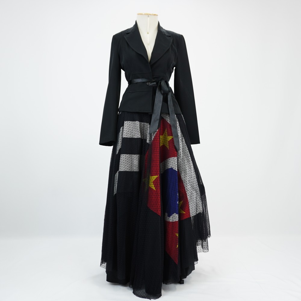 Saia bandeira de São Paulo Vera Voltar U.PR.01.090 (1) U.PR.01.090b (1) U.PR.01.090b (2) U.PR.01.090b (3) Metadados Miniatura Compartilhe Número de TomboU.PR.01.090bTítuloSaia bandeira de São Paulo VeraDescriçãoSaia midi volumosa com 3 camadas, sendo 1 preta, 1 com a bandeira do estado de São Paulo e a exterior em tule de poá. Fechamento com zíper e ajuste da cintura com cordão preto.LocalizaçãoArara 003EspetáculoBacantes | Cacilda!Quem vestiuVera ValdezColeçãoColeção de Peças RarasDimensões do Item - altura x largura (cm)Altura: 104 cm; Largura: 107 cmMaterial/Composição do ItemTecidos planos sintéticosEstado de ConservaçãoBomData da Catalogaçãojaneiro 15, 2026 Mais Informações NotasFigurino completo composto por: U.PR.01.090a U.PR.01.090c U.PR.01.090d Continuar navegando Fita cetim preta Kimono creme Técnica Banquete Voltar para a lista de itens