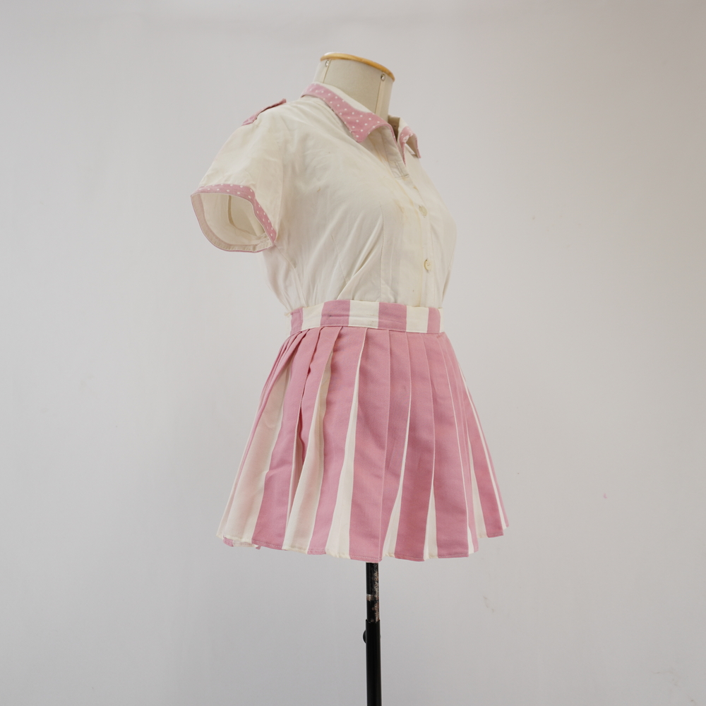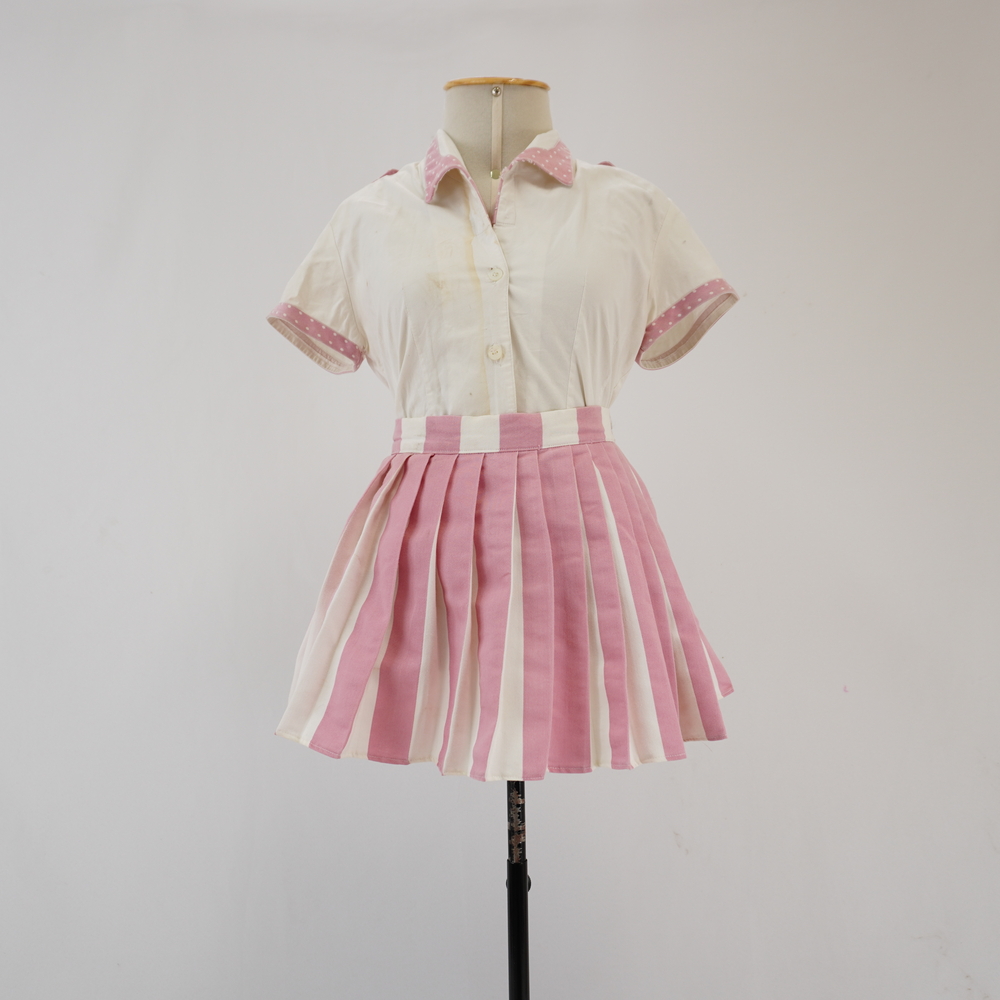 Saia curta plissada branca e rosa Voltar U.RO.18.011b (1) U.RO.18.011b (2) U.RO.18.011b (3) Figurino completo U.RO.18.011 (1) Figurino completo U.RO.18.011 (2) Figurino U.RO.18.011 (3) Metadados Miniatura Compartilhe Número de TomboU.RO.18.011bTítuloSaia curta plissada branca e rosaDescriçãoSaia curta listrada vertical rosa claro e branco com pregas na largura da listra rosa, fechamento em velcro no cósLocalizaçãoSala 008EspetáculoRoda VivaAno do Espetáculo2018Autoria: figurinista/aderecista Sonia Ushiyama Quem vestiuMarcella MaiaColeçãoColeção RepertórioDimensões do Item - altura x largura (cm)35 x 50Material/Composição do ItemTecido plano sarja com algodão na composiçãoEstado de ConservaçãoBomData da Catalogaçãodezembro 18, 2025 Mais Informações NotasFigurino completo composto por Camisa manga curta branca com rosa - U.RO.18.011a Saia curta plissada branca e rosa - U.RO.18.011b Continuar navegando Camisa manga curta branca com rosa Vestido capa verde Voltar para a lista de itens