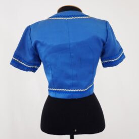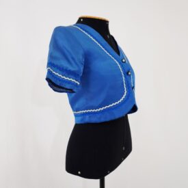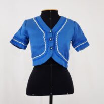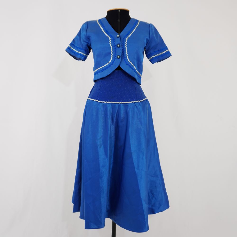 Saia longuete azul Celeste Voltar U.BO.99.019a (2) U.BO.99.019a (3) Figurino completo U.BO.99.019 (1) Figurino completo U.BO.99.019 (2) Figurino completo U.BO.99.019 (3) Metadados Miniatura Compartilhe Número de TomboU.BO.99.019bTítuloSaia longuete azul CelesteDescriçãoSaia longuete godê, parte superior com tecido bordado em poá azul royal com forro acetinado azul acinzentado, fechamento em zíper na lateral e colcheteLocalizaçãoArara 013EspetáculoBoca de OuroAno do Espetáculo1999 | 2000 | 2001Autoria: figurinista/aderecista Olintho Malaquias ColeçãoColeção RepertórioDimensões do Item - altura x largura (cm)77 x 65Material/Composição do ItemTecido plano algodão bordado e acetinado, zíper e colcheteEstado de ConservaçãoBomData da Catalogaçãooutubro 16, 2025 Mais Informações NotasFigurino completo composto por: Casaqueto azul Celeste - U.BO.99.019a Saia longuete azul Celeste - U.BO.99.019b Continuar navegando Casaqueto azul Celeste Vestido longo Virgem Azul Celeste Voltar para a lista de itens