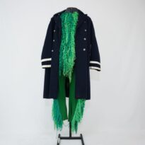 Sobretudo azul marinho Zé Carioca Voltar Metadados Miniatura Compartilhe Número de TomboU.C2.09.003cTítuloSobretudo azul marinho Zé CariocaDescriçãoSobretudo azul marinho, abotoamento duplo, dois bolsos embutidos na frente, um bolso interno, martingalle nos ombros com fita de corgurão off white nas bordas e nos punhos, fenda no meio das costas, peça forradaLocalizaçãoArara 015EspetáculoCacilda!!!Ano do Espetáculo2009Quem vestiuGuilherme CalzavaraPersonagemZé CariocaColeçãoColeção RepertórioDimensões do Item - altura x largura (cm)118 x 70Material/Composição do Item100% lã. Forro: 55% poliéster e 45% algodãoEstado de ConservaçãoRegularData da Catalogaçãonovembro 6, 2025 Mais Informações NotasEtiqueta: "Roupas Hercor". Confirmar se faz parte do Zé Carioca | Figurino completo composto por: Blusa verde Zé Carioca - U.C2.09.003a Calça verde Zé Carioca - U.C2.09.003b Sobretudo azul marinho Zé Carioca - U.C2.09.003c Continuar navegando Calça verde Zé Carioca Vestido de veludo verde sem manga com bordados Voltar para a lista de itens