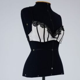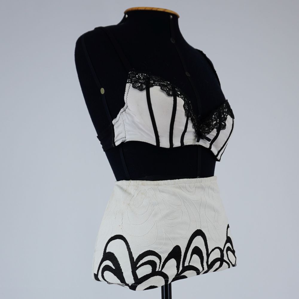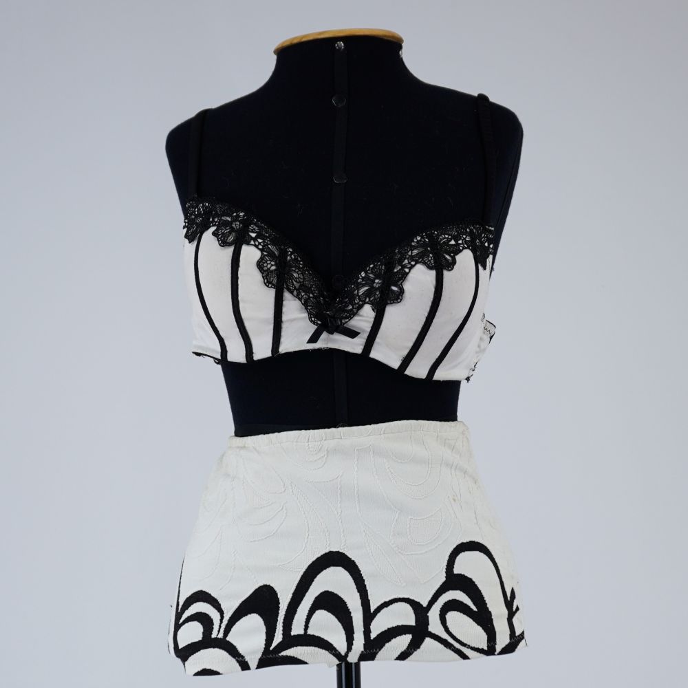 Sutiã branco renda preta Voltar U.C2.09.022a (2) U.C2.09.022a (3) Figurino completo - U.C2.09.002 (2) Figurino completo - U.C2.09.002 (3) Metadados Miniatura Compartilhe Número de TomboU.C2.09.002aTítuloSutiã branco renda pretaDescriçãoSutiã branco com renda preta no decote e faixas pretas costuradas. Lateral e alças em tule preto, fechamento com colchete. Com bojo.LocalizaçãoSala 003EspetáculoCacilda!!Ano do Espetáculo2009ColeçãoColeção RepertórioDimensões do Item - altura x largura (cm)22 x 77Material/Composição do ItemMalha sintética, renda sintética, tule de malha sintéticoEstado de ConservaçãoBomData da Catalogaçãonovembro 5, 2025 Mais Informações NotasFigurino completo composto por: Sutiã branco renda preta - U.C2.09.002a Sala 3 Hot pant branca com renda - U.C2.09.002b Continuar navegando Sutiã branco com renda preta Hot pant branca com renda Voltar para a lista de itens