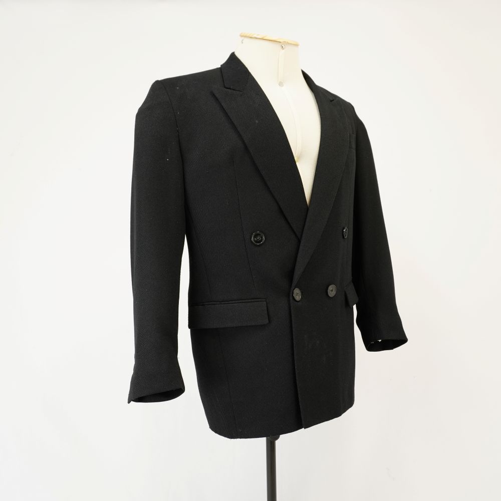 Terno preto Perdigoto Voltar U.RE.17.035c (1) U.RE.17.035c (2) U.RE.17.035c (3) Figurino completo U.RE.17.035 (1) Figurino completo U.RE.17.035 (2) Figurino completo U.RE.17.035 (3) Metadados Miniatura Compartilhe Número de TomboU.RE.17.035cTítuloTerno preto PerdigotoDescriçãoTerno de abotoamento duplo preto, três bolsos externos e quatro bolsos internos, quatro botões nos punhos, sendo dois de cada lado, com ombreira e semi forradoLocalizaçãoSala 008EspetáculoO Rei da VelaAno do Espetáculo2017Autoria: figurinista/aderecista Gabriela Campos Quem vestiuRoderick HimerosPersonagemPerdigotoColeçãoColeção RepertórioDimensões do Item - altura x largura (cm)84 x 52Material/Composição do ItemTecido plano 67% poliéster, 33% viscose. Forro: tecido plano 100% poliésterEstado de ConservaçãoBomData da Catalogaçãodezembro 11, 2025 Mais Informações NotasEtiqueta: "Garbo" "Cristian Ritz" | Figurino completo composto por Camisa branca Perdigoto - U.RE.17.035a Calça preta Perdigoto - U.RE.17.035b Terno preto Perdigoto - U.RE.17.035c Gravata preta Perdigoto - U.RE.17.035d Continuar navegando Calça preta Perdigoto Gravata preta Perdigoto Voltar para a lista de itens