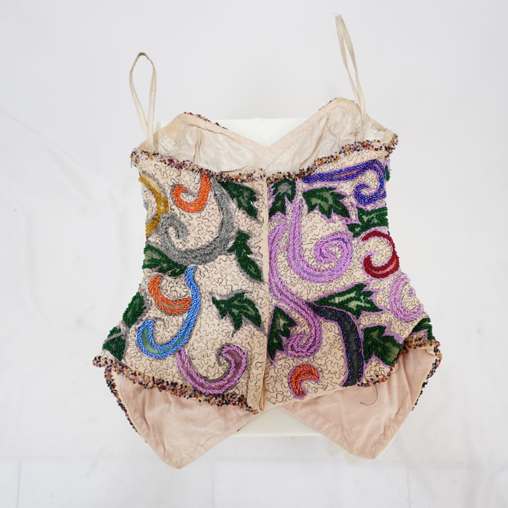 Top Bustiê Bordado Voltar U.CC.08.016 (2) Metadados Miniatura Compartilhe Número de TomboU.PR.01.101TítuloTop Bustiê BordadoDescriçãoBustiê sem alças, base em tecido plano bege estampado com formas orgânicas pretas, aplicações com bordados de miçangas coloridas e cordões, zíper e colchete para fechamento no centro das costas.LocalizaçãoArara 015EspetáculoCypriano e Chantalan | Macumba Antropófaga | Os Sertões - A Luta IIAno do Espetáculo2006 | 2008 | 2011 | 2012 | 2017Autoria: figurinista/aderecista Sonia Ushiyama Quem vestiuCamila Mota | Vera ValdezColeçãoColeção de Peças RarasDimensões do Item - altura x largura (cm)44 x 41Material/Composição do ItemTecido plano natural e forro sintéticoEstado de ConservaçãoRegularData da Catalogaçãonovembro 28, 2025 Mais Informações NotasInscrição: "06.002"; "73.18.001"; "Venda 250" Continuar navegando Saia Odalisca em organza vermelha e preto Vestido curto preto Voltar para a lista de itens