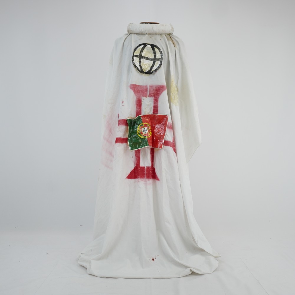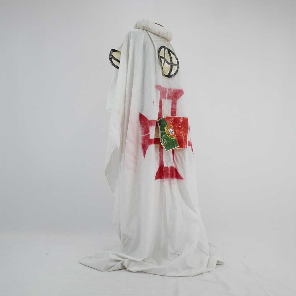 Túnica Portugal Voltar U.MA.11.038 (1) U.MA.11.038 (2) U.MA.11.038 (3) Metadados Miniatura Compartilhe Número de TomboU.MA.11.038TítuloTúnica PortugalDescriçãoTúnica ampla branca com gola alta estruturada, construída com cola. Com stencil da cruz de malta vermelha, na frente e no verso. Aplicações de impressão em papel plástificado da bandeira de Portugal e símbolo do planeta em preto e brancoLocalizaçãoSala 008EspetáculoMacumba AntropófagaAno do Espetáculo2011 | 2012 | 2017PersonagemPortugalColeçãoColeção RepertórioDimensões do Item - altura x largura (cm)215 x 90Material/Composição do ItemTecido plano sintético, papel, plásticoEstado de ConservaçãoRuim Continuar navegando Bolsa de franjas preta Neusa Suely Faixa trançada azul e preta Voltar para a lista de itens