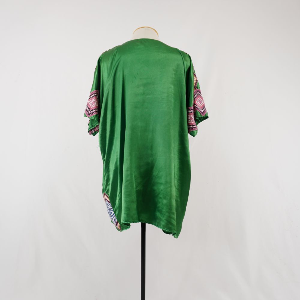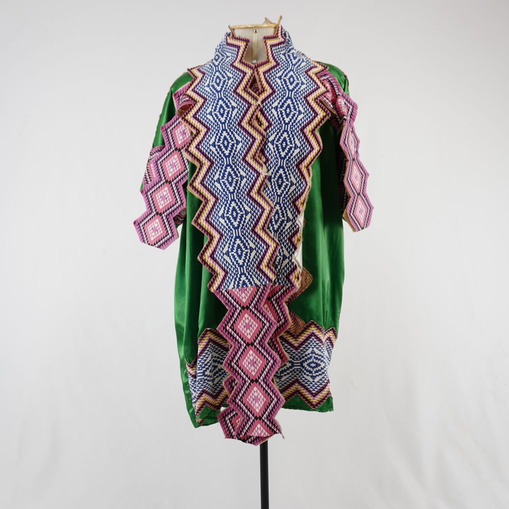 Túnica verde Voltar U.CS.01.087a (1) U.CS.01.087a (2) U.CS.01.087a (3) Figurino completo U.CS.01.087 (1) Figurino completo U.CS.01.087 (2) Figurino completo U.CS.01.087 (3) Metadados Miniatura Compartilhe Número de TomboU.CS.01.087aTítuloTúnica verdeDescriçãoTúnica midi verde com aplicações geométricas que se assemelham a losangos em amarelo, rosa, verde e preto no centro frente e aplicações geométricas menores em triângulos em azul, branco, preto, rosa e amarelo nos ombros, mangas e barras.LocalizaçãoArara 004EspetáculoCacildasColeçãoColeção RepertórioDimensões do Item - altura x largura (cm)102 x 100Material/Composição do ItemTecido plano cetim sintético e aplicações de malha sintéticaEstado de ConservaçãoBomData da Catalogaçãonovembro 28, 2025 Mais Informações NotasAcompanha acessório de figurino tipo estola | Figurino completo composto por Túnica verde - U.CS.01.087a Acessório de cena tipo estola - U.CS.01.087b Continuar navegando Vestido tubinho verde Acessório de cena tipo estola Voltar para a lista de itens
