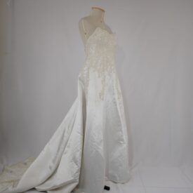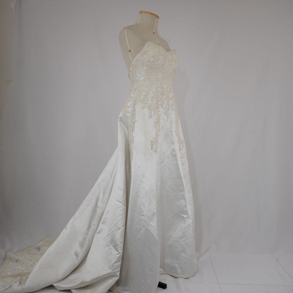 Vestido de noiva Voltar U.OB.07.006 (2) U.OB.07.006 (3) Metadados Miniatura Compartilhe Número de TomboU.OB.07.006TítuloVestido de noivaDescriçãoVestido de noiva branco sem manga com rendas, miçangas e canutilhos bordados na parte do tronco e miçangas na barra do vestido. Forro branco com fechemento em zíper e vestido com fechamento em botõesLocalizaçãoArara 014EspetáculoOs BandidosAno do Espetáculo2007Quem vestiuSylvia PradoPersonagemAriadne BrazilhaColeçãoColeção RepertórioDimensões do Item - altura x largura (cm)125 x 55Material/Composição do ItemTecido planoEstado de ConservaçãoBomData da Catalogaçãooutubro 15, 2025 Mais Informações NotasCauda mede 55 cm Continuar navegando Faixa vermelha kimono Capa azul marinho Voltar para a lista de itens